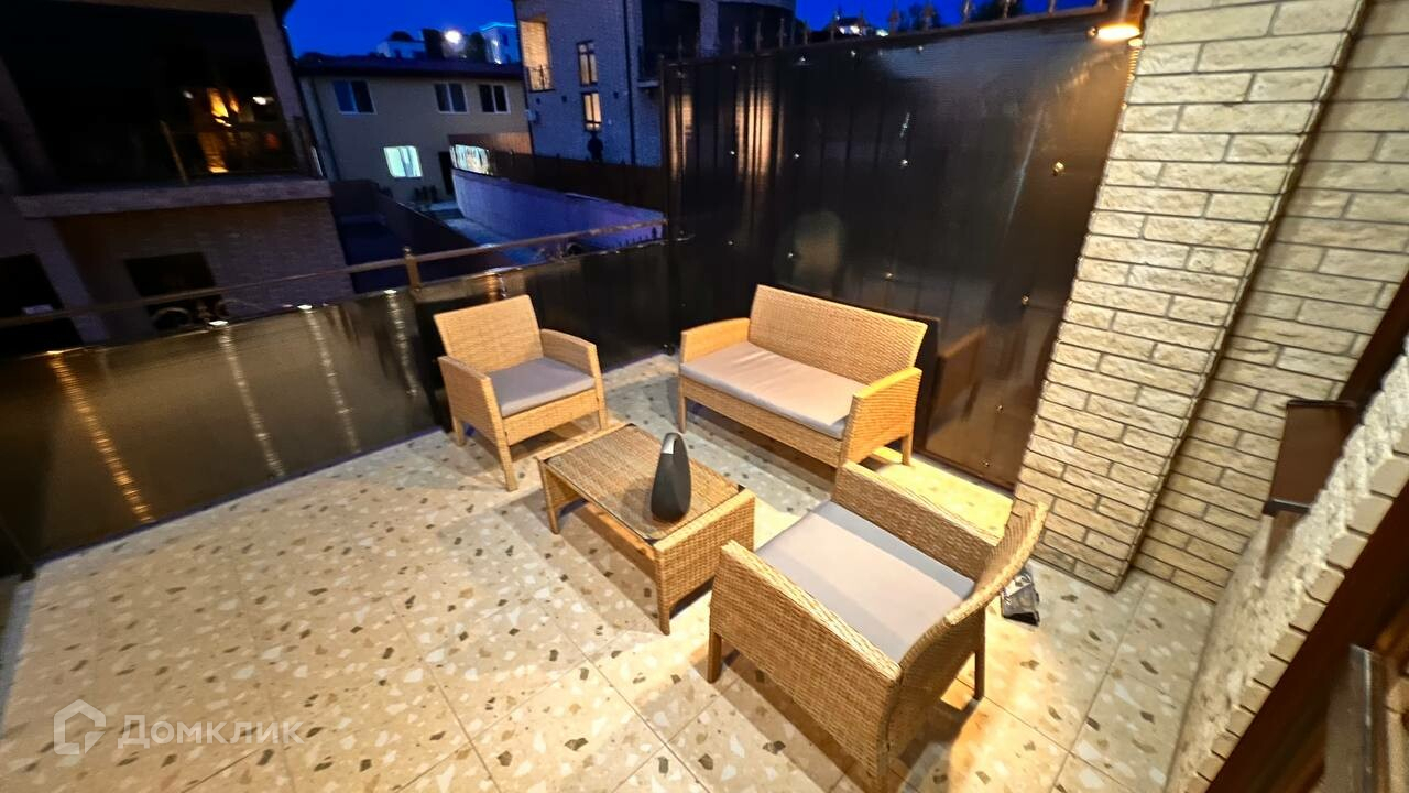 На втором этаже, оборудованная ротанговой мебелью, летняя терраса.