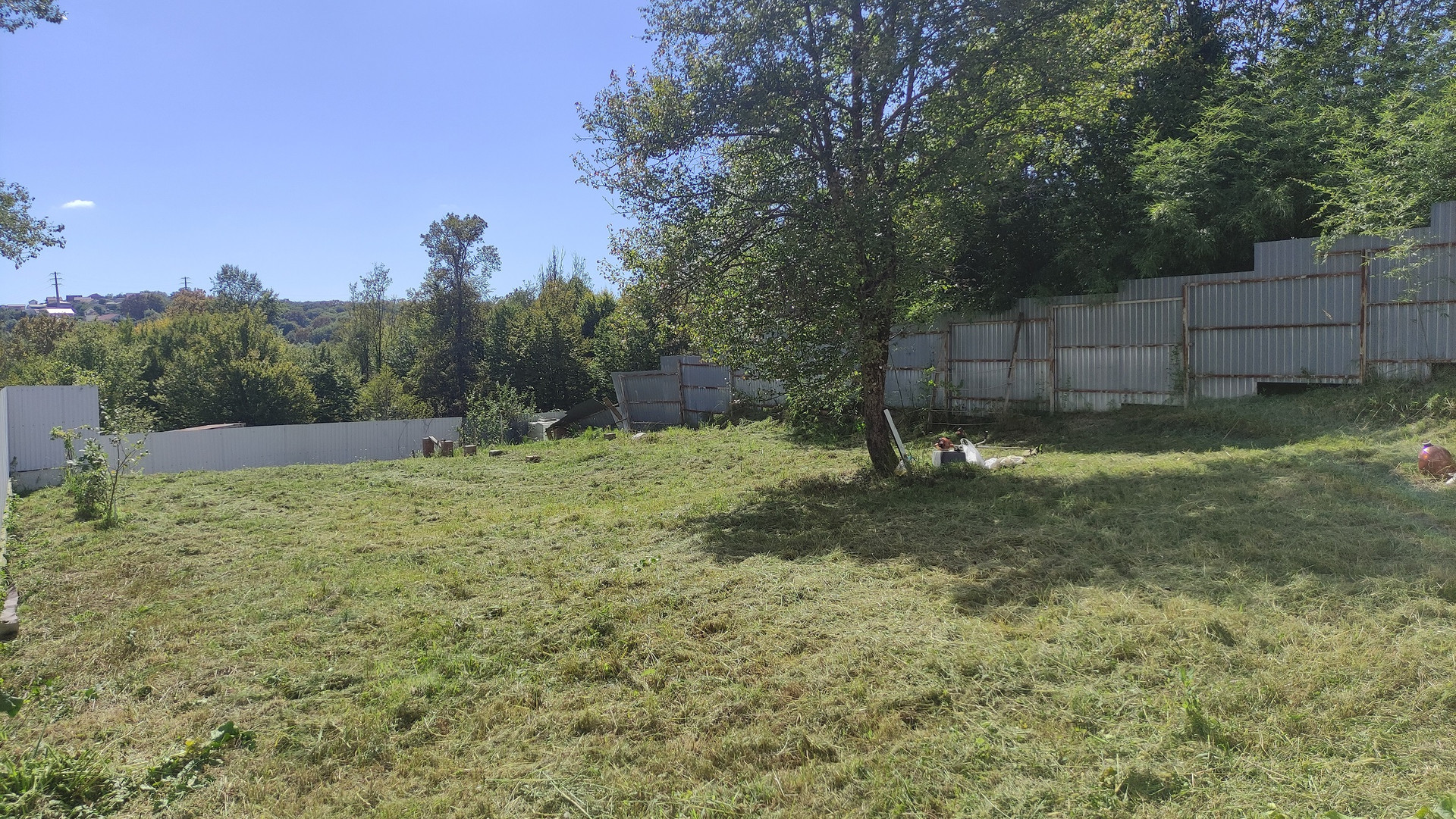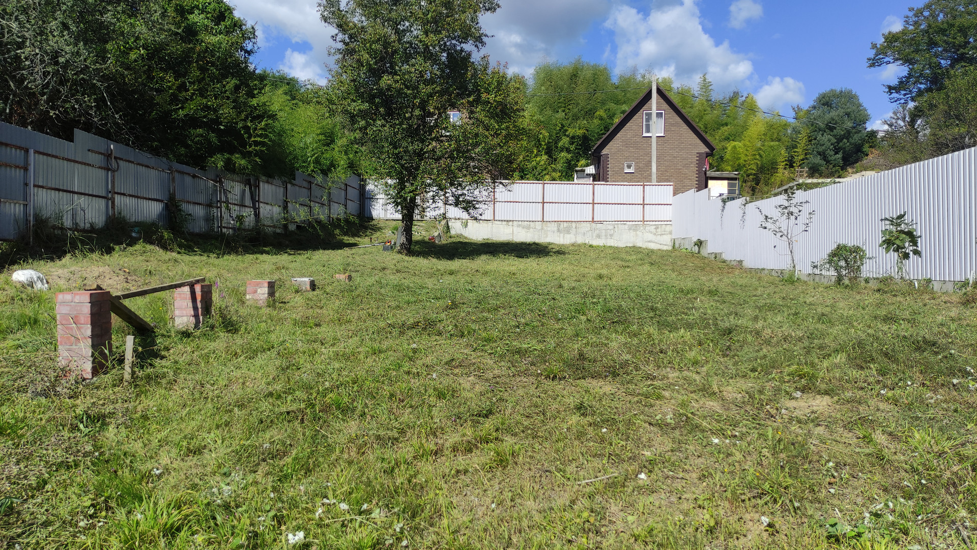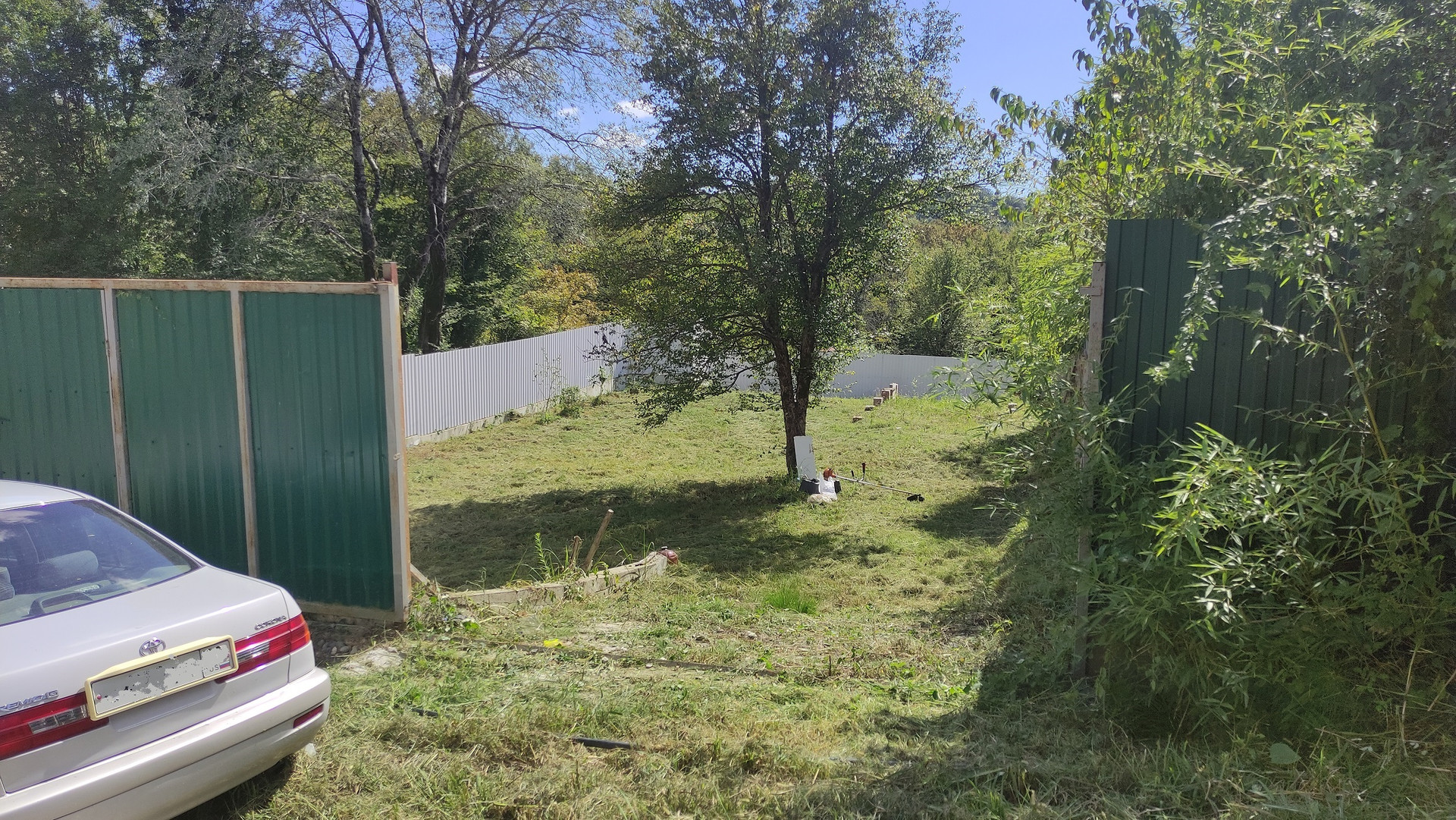 На участке посажены саженцы хурмы, черешни, сливы, мандарины, 4 лозы винограда.