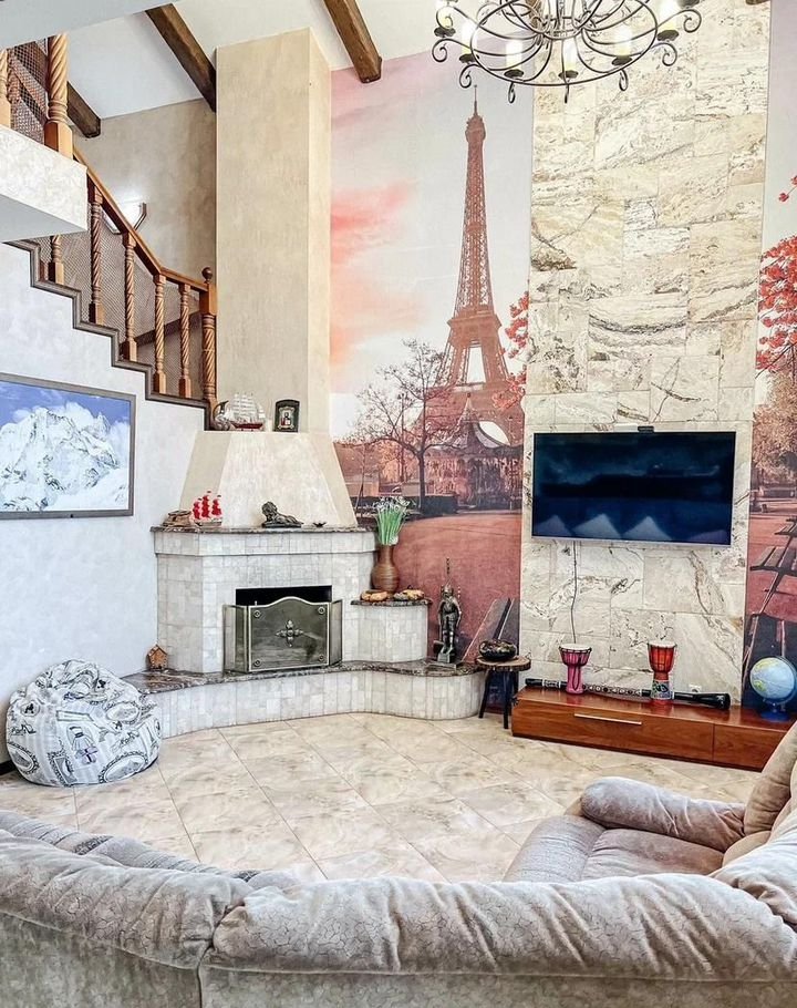 На 1 этаже: кухня, гостиная с камином, гостевая комната, санузел с ванной, гардеробная.