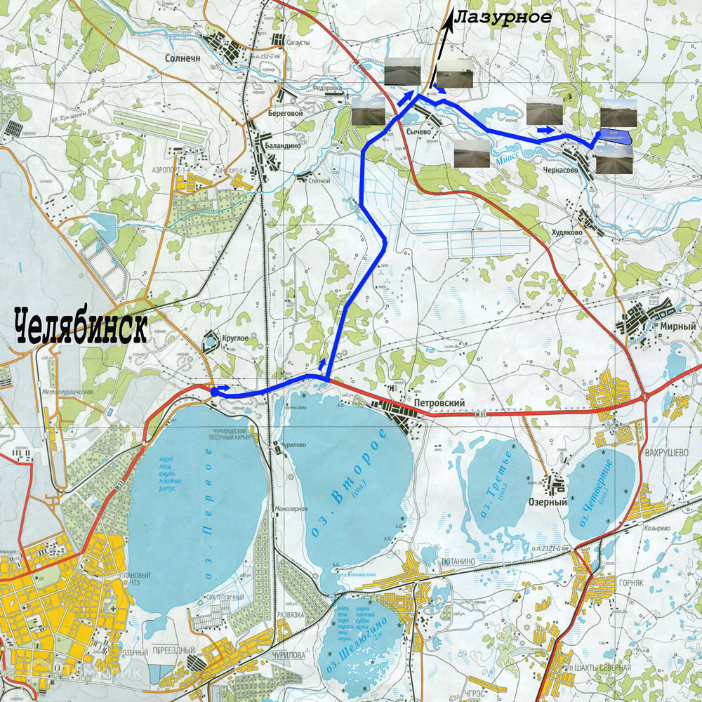 От озера Сугояк -7 км. В противоположном направлении от Томинского ГОКа.