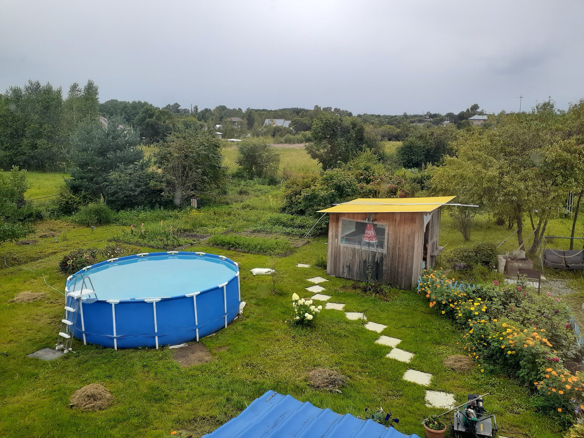 Красивый благоустроенный участок ( летний бассейн,клумбы цветов, огород,плодово-ягодные насаждения).