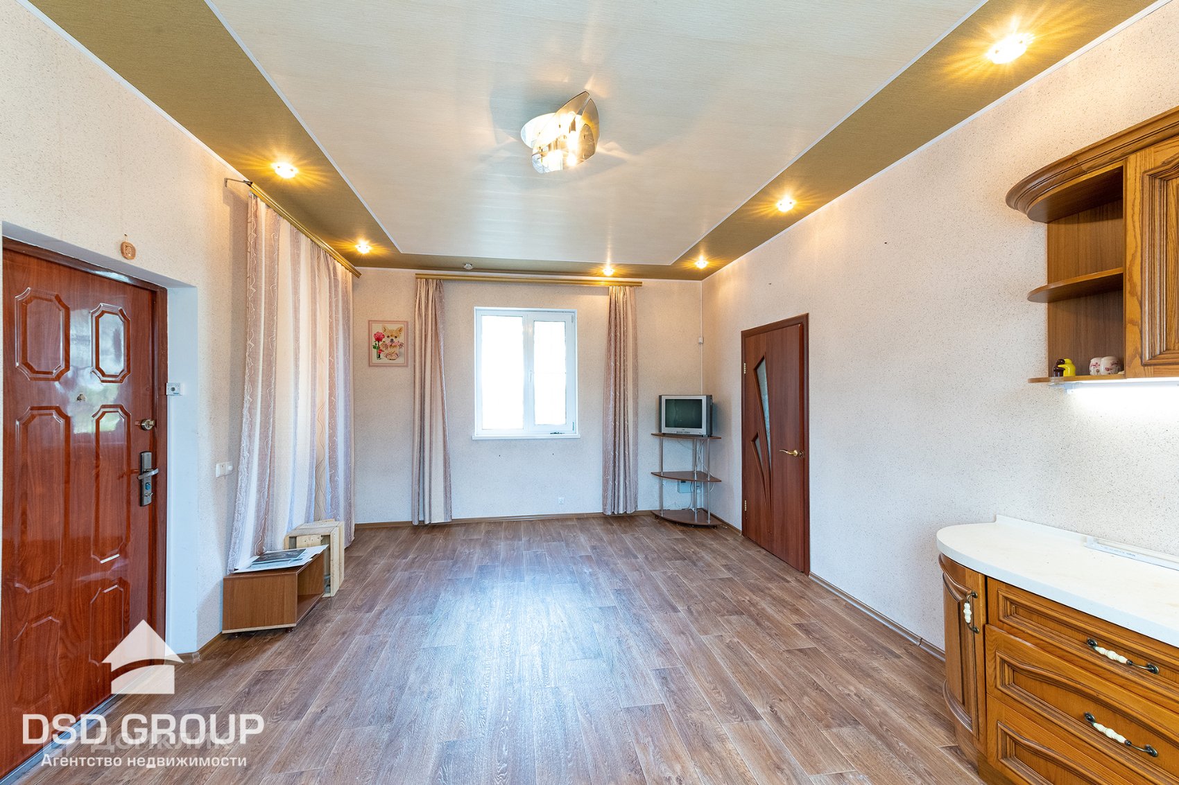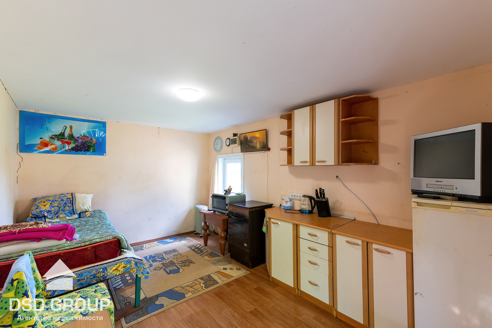 - комната 9м2 (шкаф, диван, тумба, телевизор);
