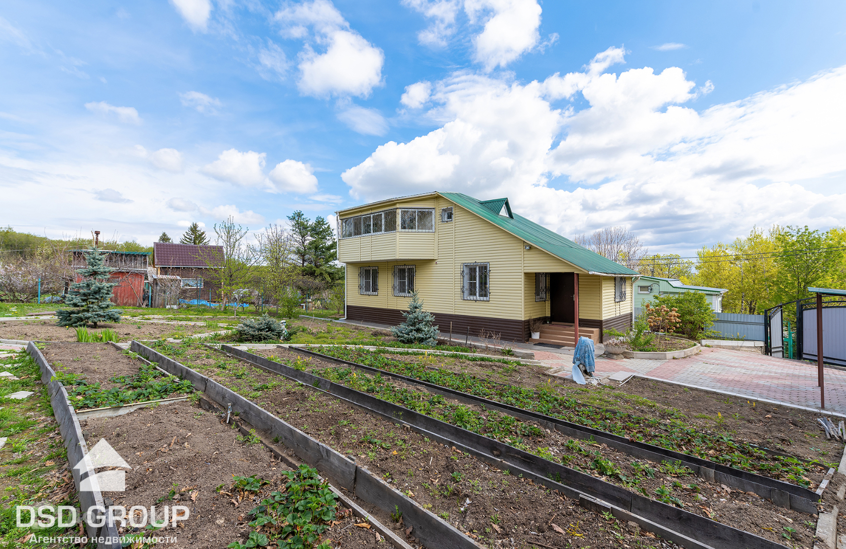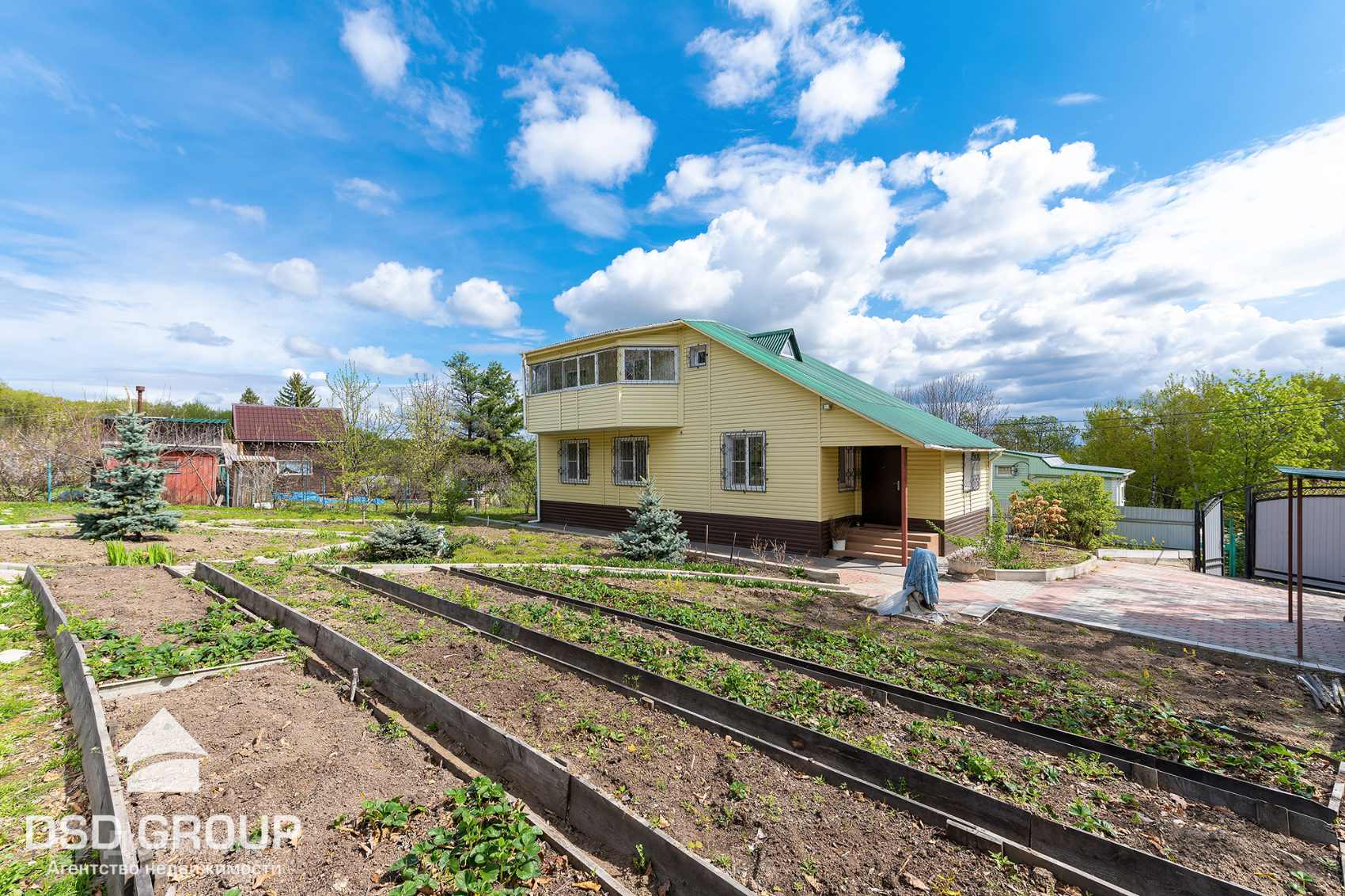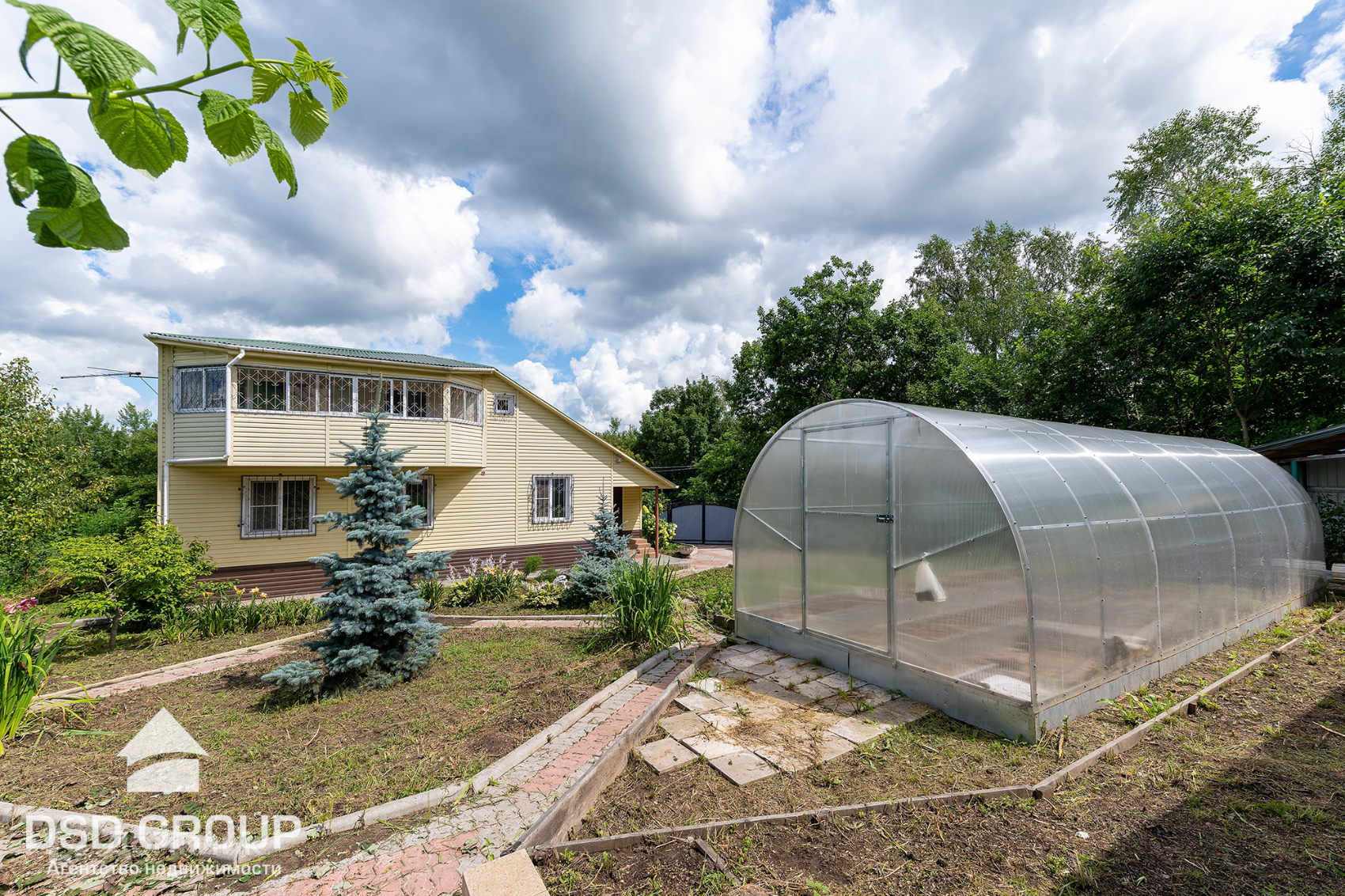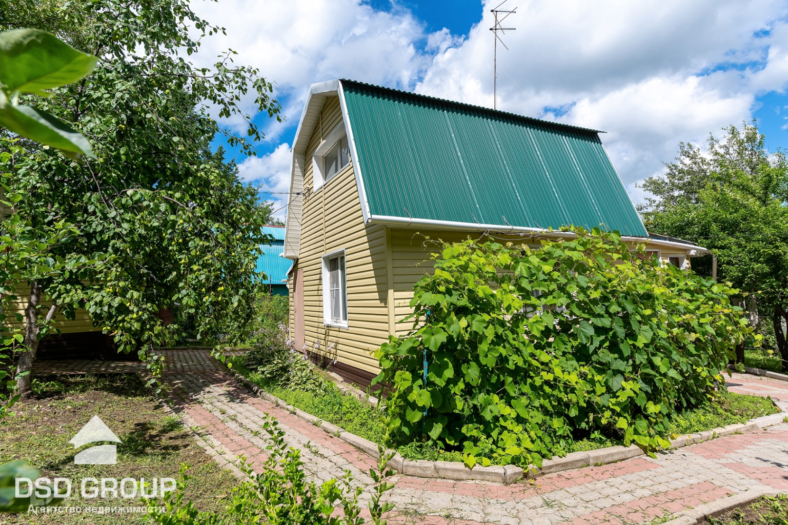 11. на участке имеется плодовые деревья и кустарники: слива, вишня, красная и черная смородина, малина, яблоня, абрикос, груша, черная рябина, виноград сортовой и дикий, малина, клубника, голубая Ель;
