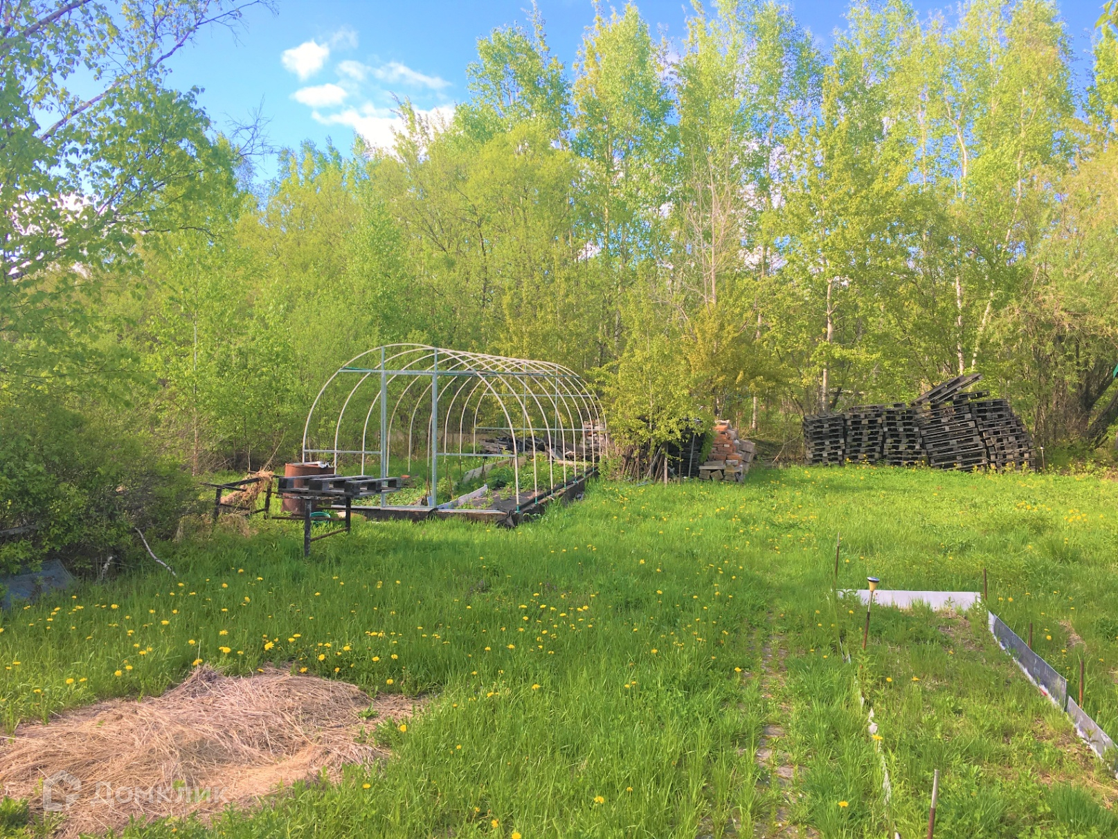 - На участке расположены дом, баня, кунг ( для хранения хоз. инвентаря и других принадлежностей ), мангальная зона, настоящий тандыр встроенный в землю под навесом, теплица, грядки и в конце участка водоем свой для полива, тех работ.