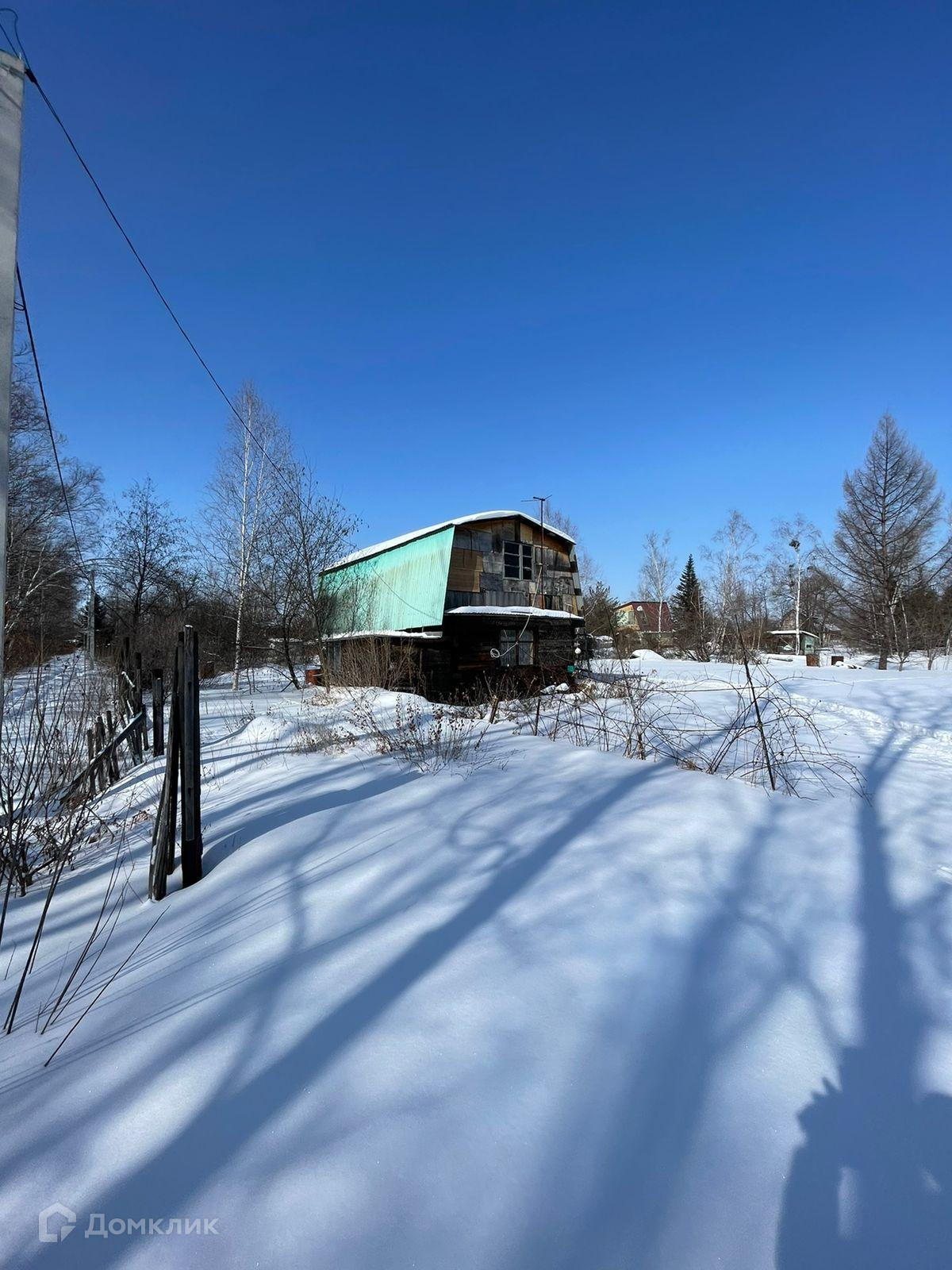На участке находится деревянный дачный домик, состоящий из двух этажей для проживания во время отдыха. Свет круглогодичный.