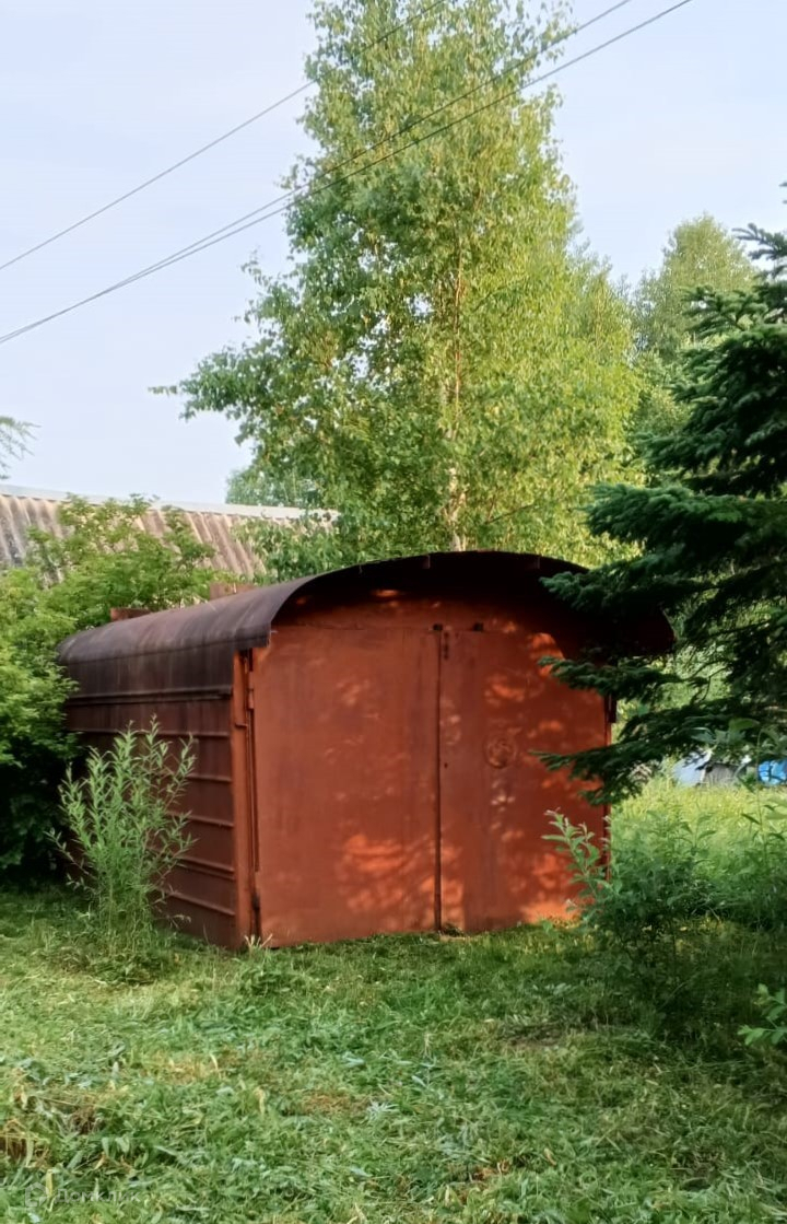 Дачный домик и металлический гараж.