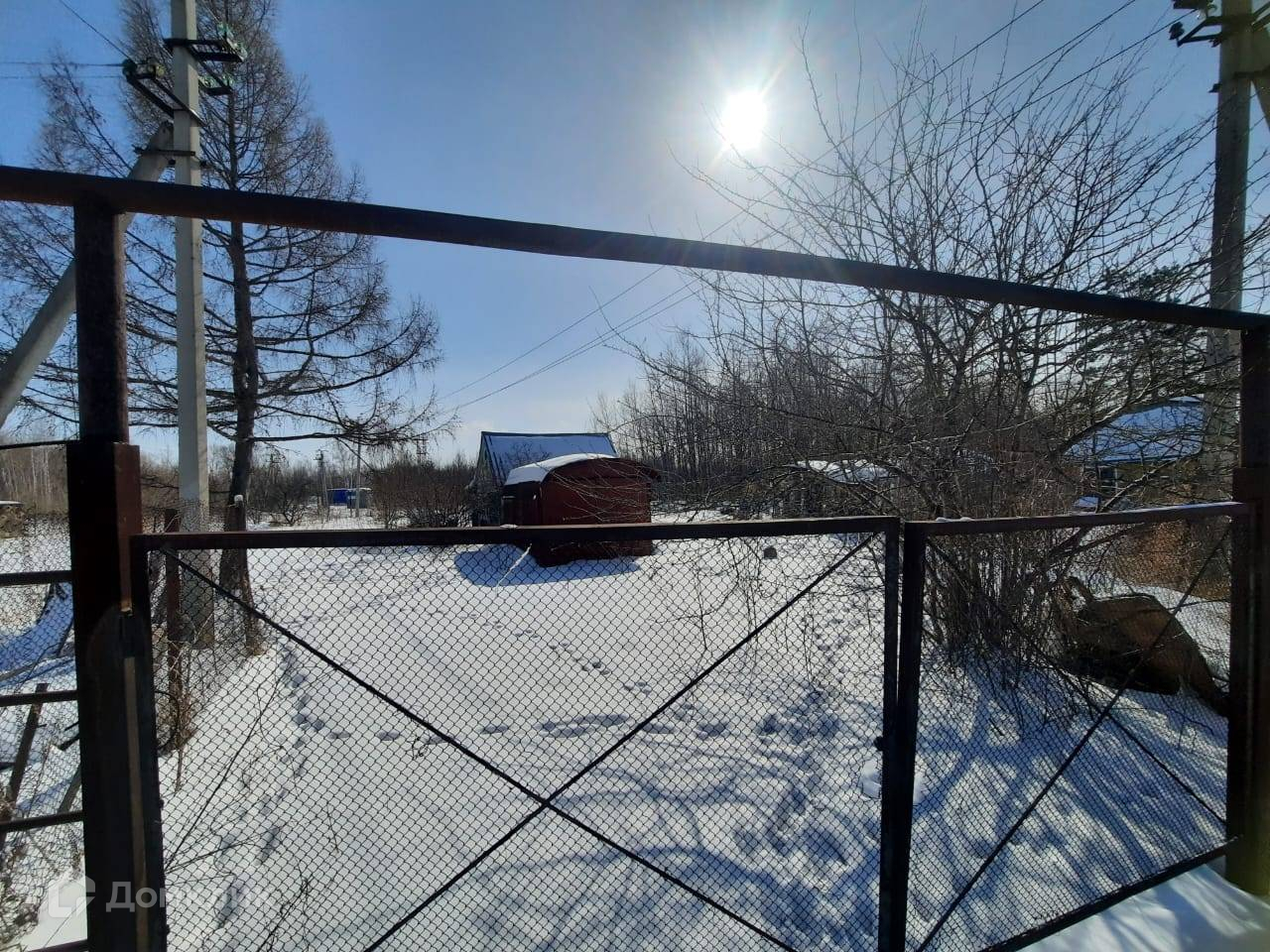 Заезд на участок через металлические ворота.
