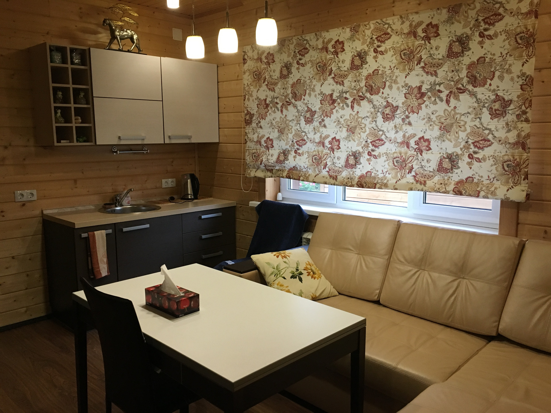 1этаж: прихожая около 9 кв.м (2 окна), кухня+столовая около 45 кв.м ( 3 окна), совмещенный санузел около 12 кв.м (окно); 2этаж: зона отдыха около 12 кв.м с балконом-потрясающий вид на реку, спальня хозяйская около 22 кв.м, спальня гостевая около 22 кв.м, спальня детская около 12 кв.м. Подогрев полов (плитка), электрический котел, бойлер 200л, выделенная электрическая мощность-40кВТ, телевидение "Триколор", Вай фай везде.