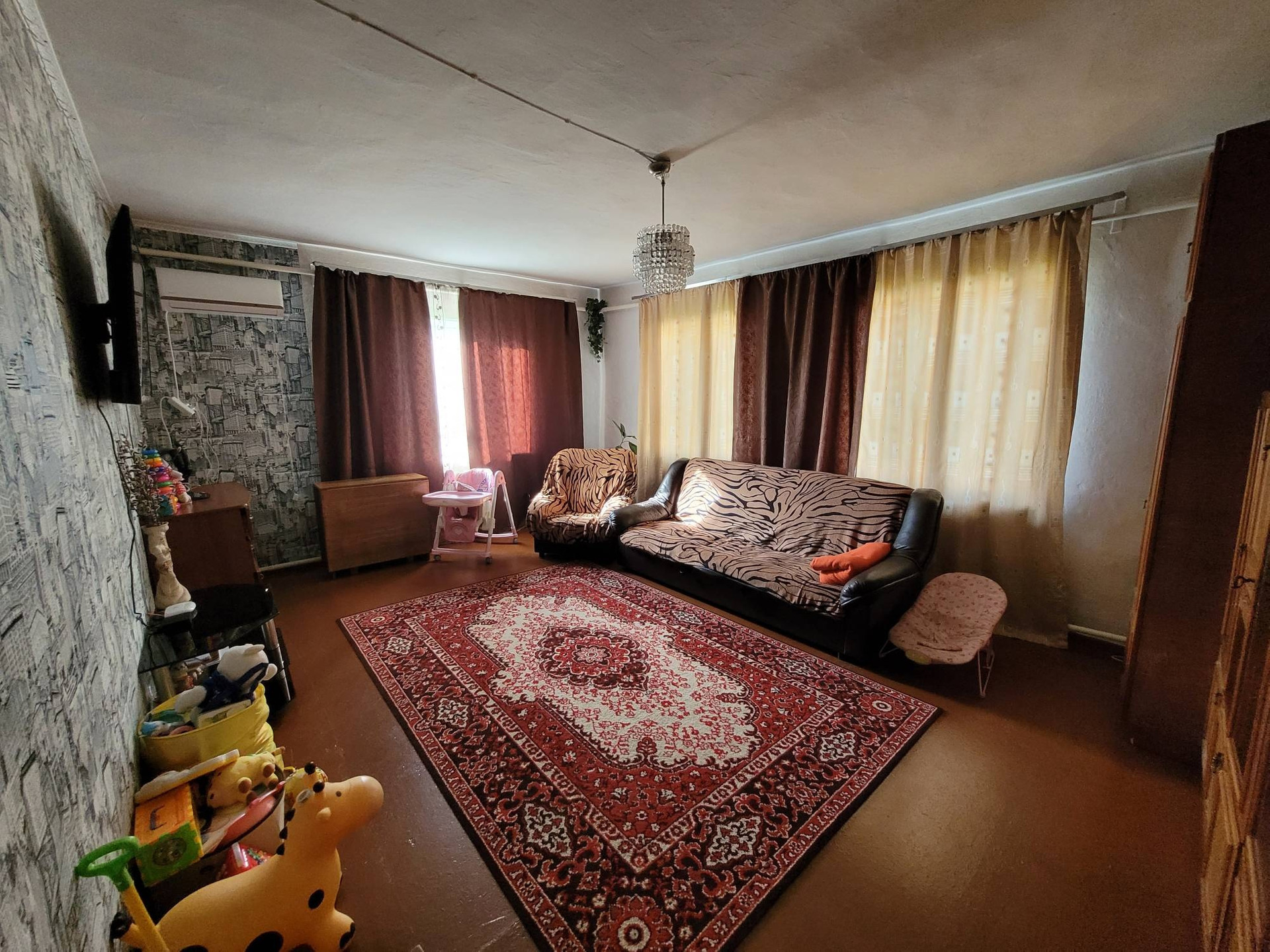 Дом находится в центре села, до минимаркета 5 мин ходьбы, школа напротив дома, дет. сад 10 мин ходьбы, рынок и администрация 15 мин ходьбы, 5 мин ходьбы до автобусной остановки.Жилая площадь 61.6кв.м., территория 19 соток! Дом деревянный, пластиковые окна, отопление как печное так электрическое, три комнаты и кухня, , скважина. Туалет, ванна находятся в доме