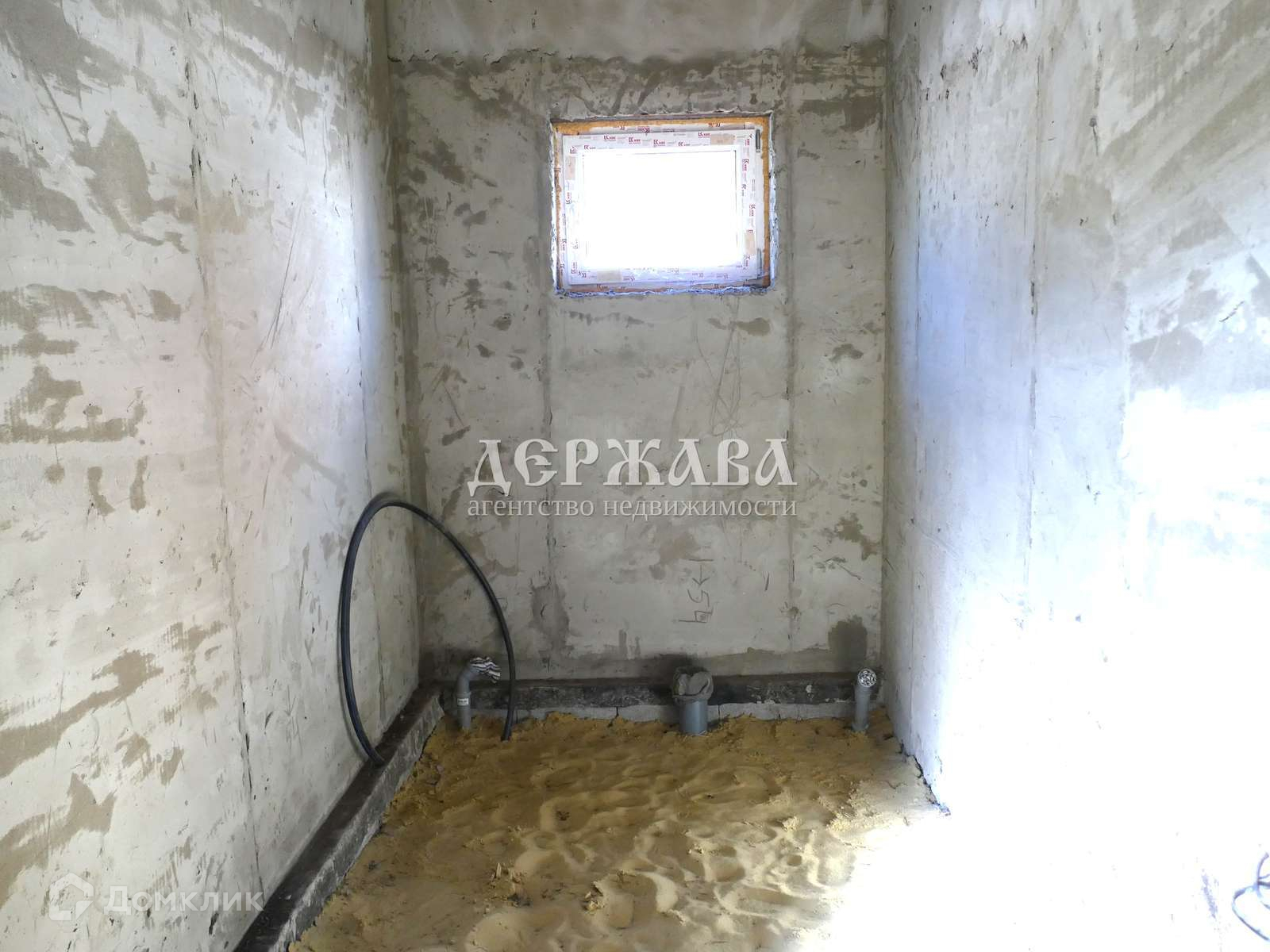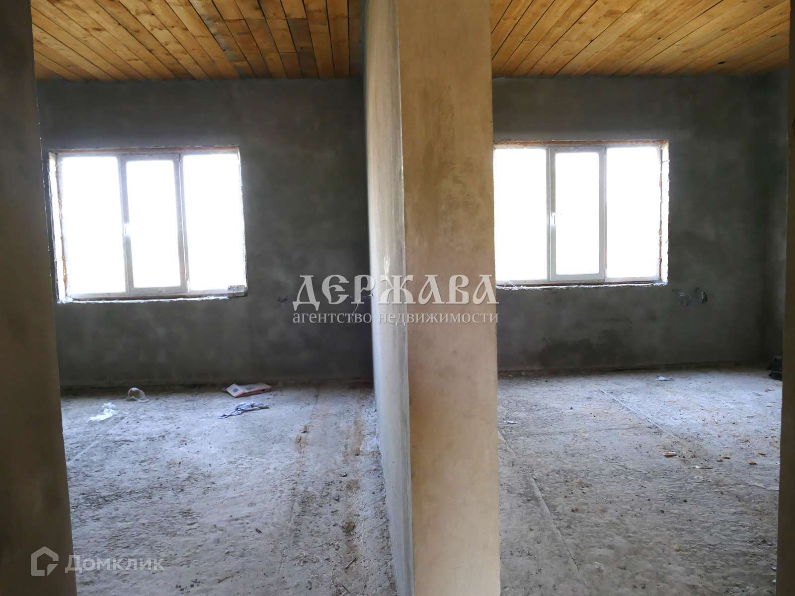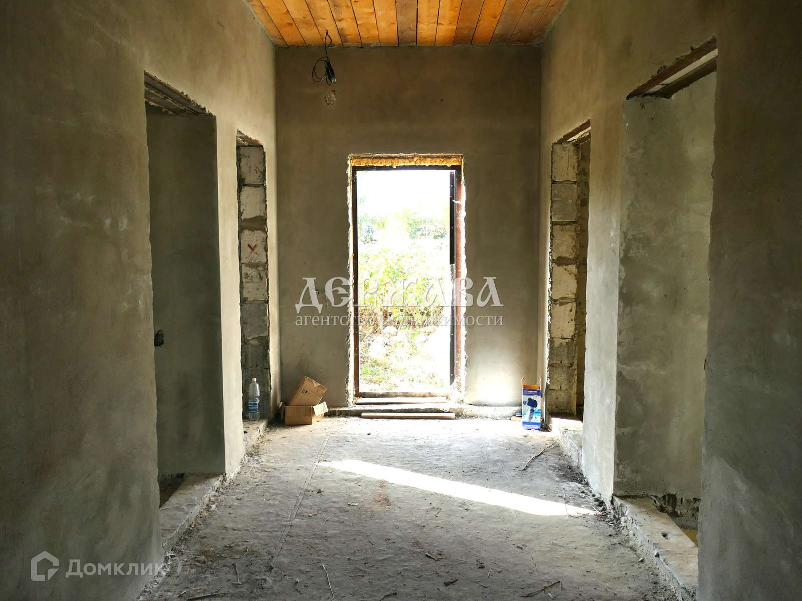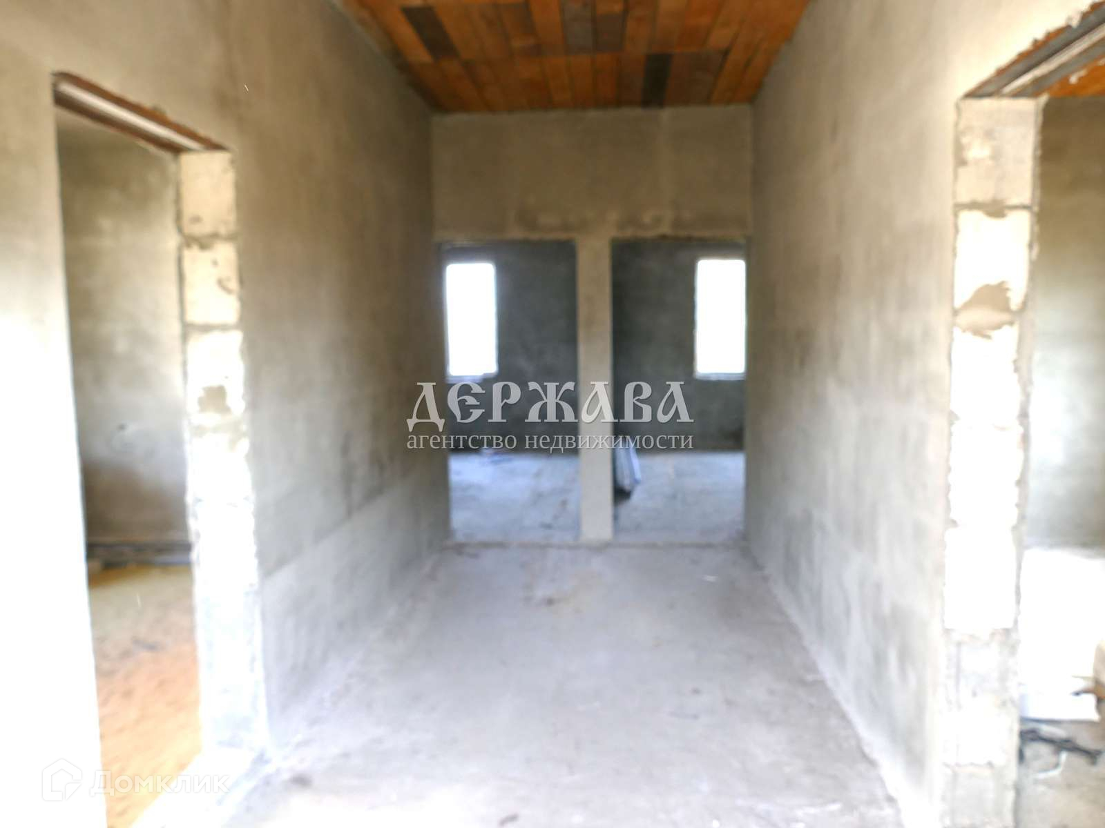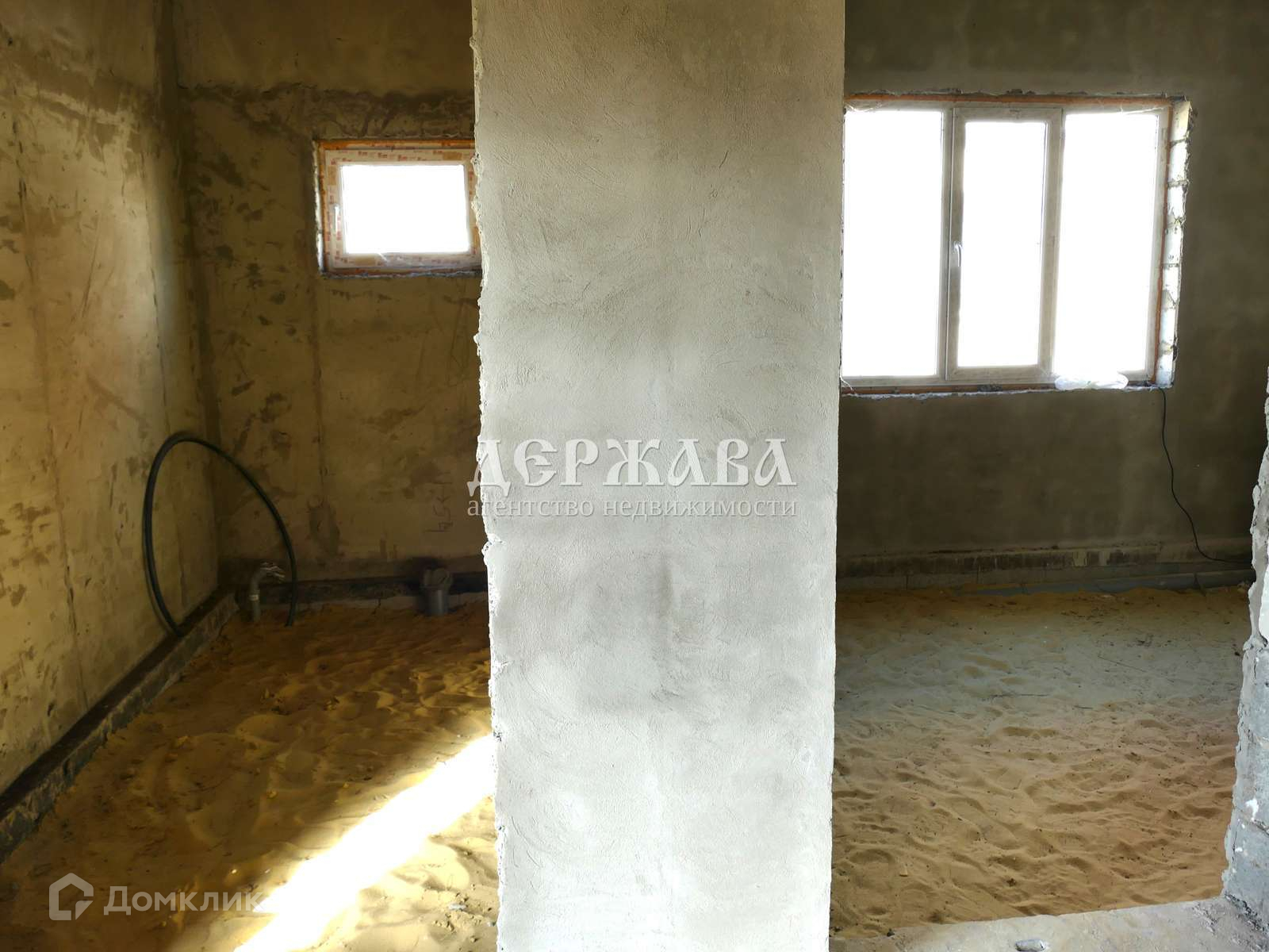 Залит черновой пол, потолки подшиты, стены оштукатурены, выполнена разводка воды( но не подключена к водопроводу), газ и свет в доме, установлен котел.