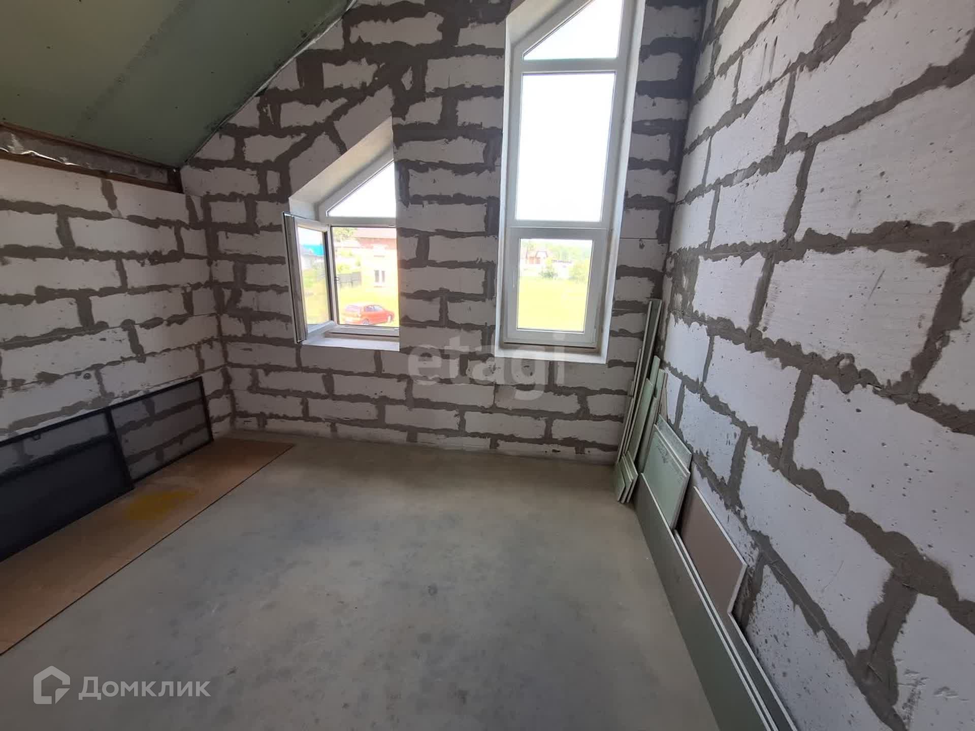 Продается 2-х этажный дом мансардного типа на участке 15 соток, общая площадь дома без учёта гаража 135,4 м2. Планировка 1 этажа: спальня, кухня-гостиная, санузел, выход на террасу; 2 этаж: три спальни, два санузла, два выхода на балкон. Гараж оборудован смотровой ямой и автоматическими воротами. Дом требует частичной достройки: возведение перегородочной стены между гаражом и котельной достраивают, установлена лестница на второй этаж, устройство системы отопления, внутренние и наружные отделочные работы, подводку газа в дом. Электричество, вода и интернет есть. Экологически чистый, спокойный район в окружении природы, рядом расположен парк Примирения. Остановка общественного транспорта в пешей доступности, также курсирует школьный автобус.