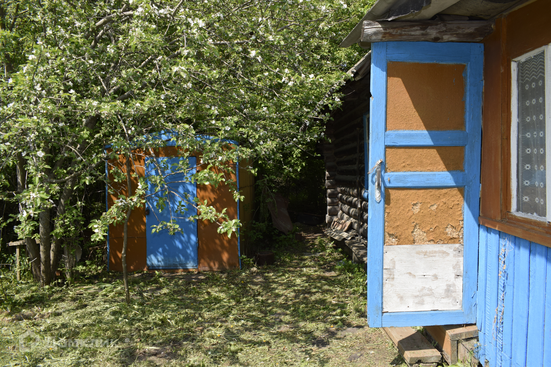 На участке располагается сарай и летняя кухня. Много плодовых деревьев и кустарников, в конце участка отдельное место для посадки картофеля. Земля ежегодно перепахивается.