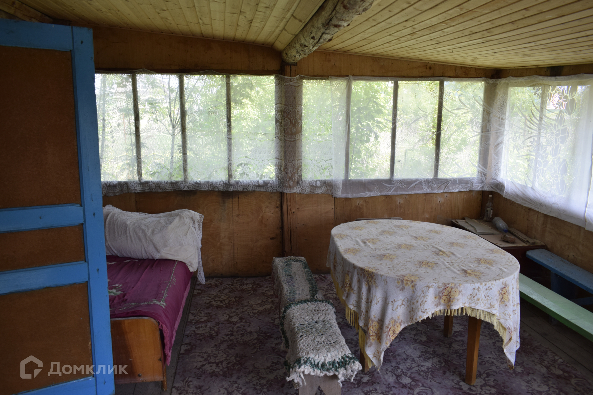 В доме большая терраса и прохладная комната.