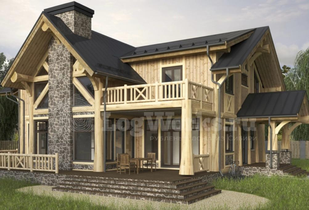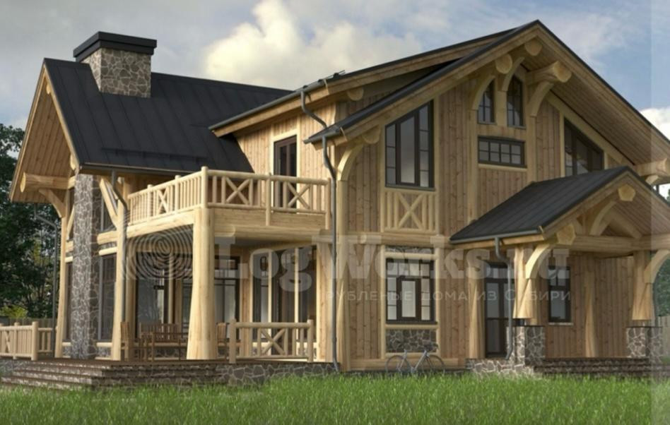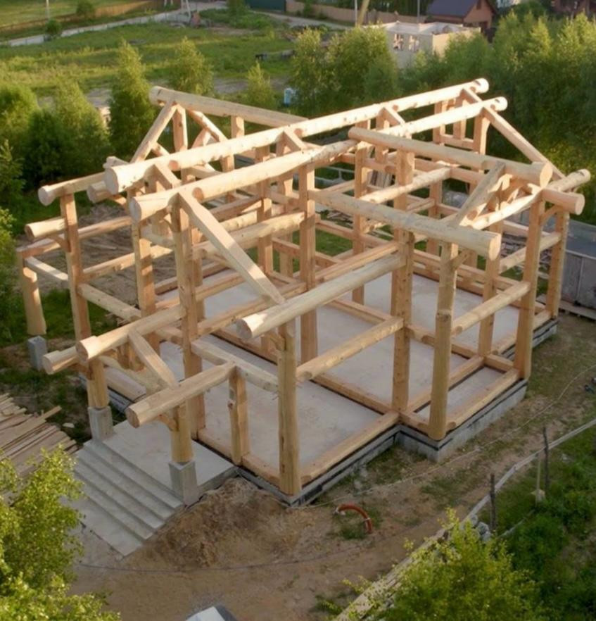 Конструкция дома (каркас) по технологии Post&Beam с коньком из бревна кедра