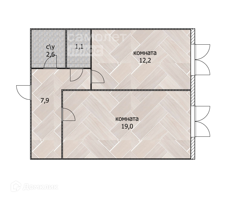 Общая площадь 42.8 м2