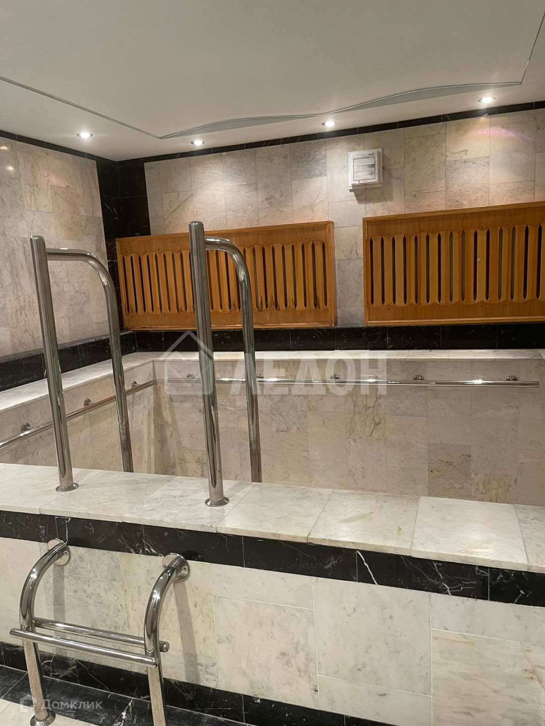 Дом трехэтажный. На первом этаже- просторный холл (35 кв м) с камином, столовая 18 кв м, на 2 этаже 3 спальни. Имеется полноценный цокольный этаж, используемый как зона отдыха (бассейн, сауна, комната). На 3 этаже- бильярдная. В доме выполнен качественный ремонт из дорогостоящих материалов. Дом меблирован.