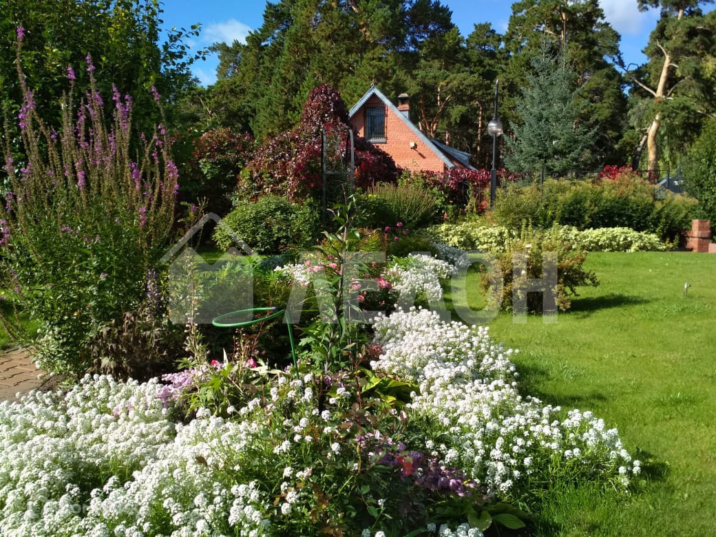 Участок огорожен кирпичным забором, ухоженный и оснащенный летней верандой с площадкой для пикников, зоной барбекю. Дорожки выложены тротуарной плиткой. Ландшафтный дизайн. На участке туи, голубые ели, плодовые насаждения. По периметру освещение и видео наблюдение. Асфальтированные подъездные пути.