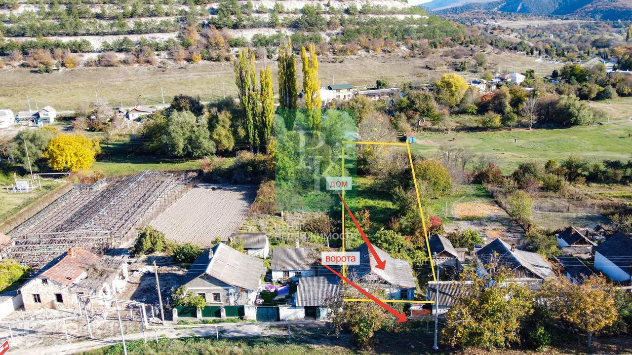 Дом пригоден к проживанию, требуется косметический ремонт. На территории участка расположены хозяйственные постройки и сад с плодовыми деревьями: кизил, слива, алыча, черешня, яблони. Участок огорожен металлическим забором, получен ГПЗУ. Из дома есть выход на задний двор, где открывается живописный вид на лес, горы и озеро.