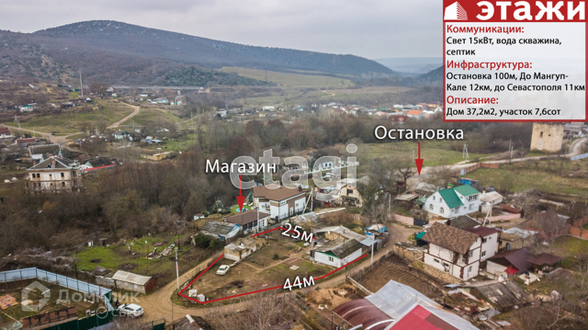 Участок полностью обработан, посажены фруктовые деревья(слива,черешня,груша,инжир), кустарники(малина, смородина, ежевика). На дом и землю оформлены все документы. Так же на участке стоит недострой 9м x 3м.