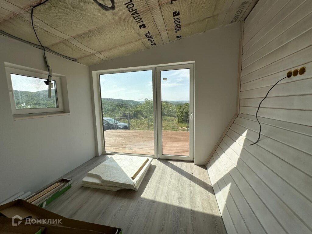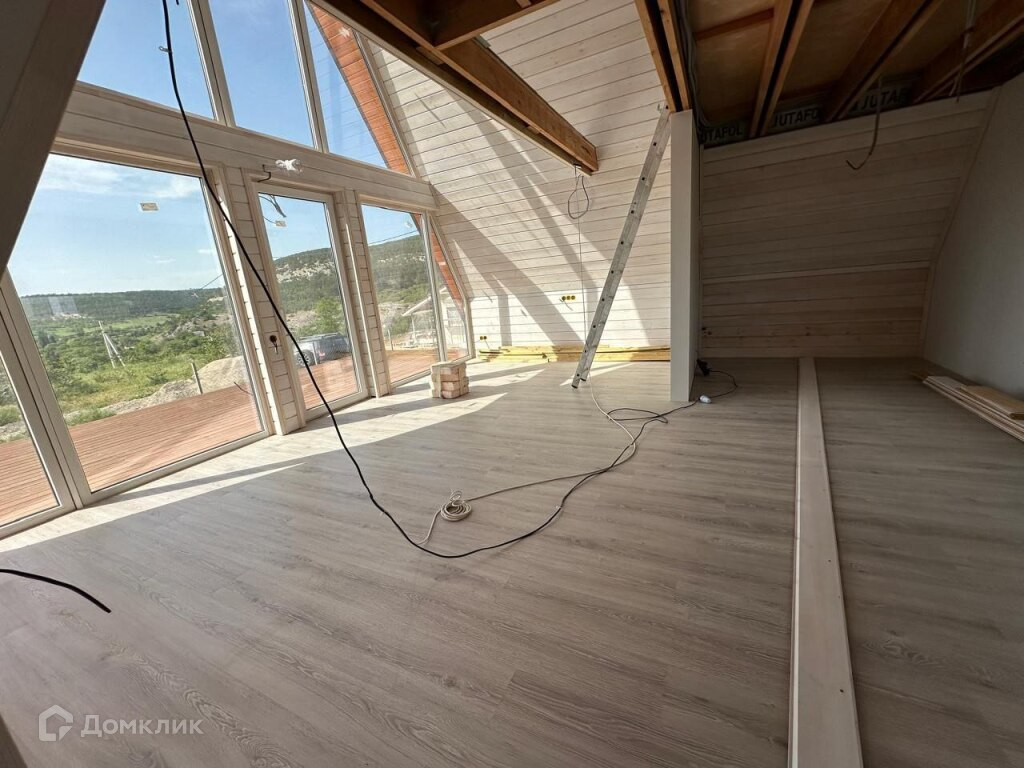 Дом 104м² на участке 4 сотки. С внутренней чистовой отделкой кроме сан узла. Дом деревянный экологически чистый материал крыша и стены утеплены 200 мм. минвата. С внутренней стороны стены гипсокартон в два слоя. Просторный светлый теплый дом с большой террасой из лиственницы. Участок идеально ровный. Находится в 10 мин. езды от Балаклавской набережной и всей необходимой инфраструктуры, магазины , банки , школа , детский сад, и тд. Также в 25 мин езды от г. Севастополь. Дом находится в прекрасном месте в окружении можжевелового и соснового леса в трёх минутах ходьбы от Чернореченского каньона и р.Черная . Идеальное место для проживания уединения с природой или для отдыха.