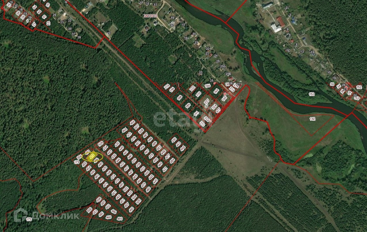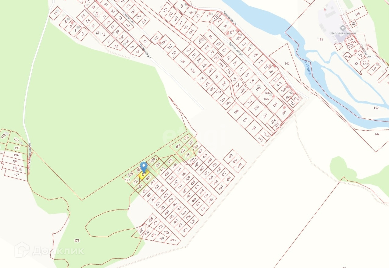 Земельный участок со статусом земель ИЖС расположен в лесном массиве на краю села Черноусово.