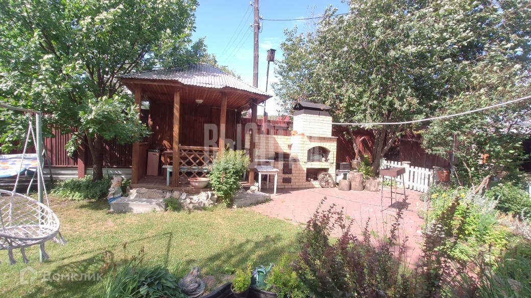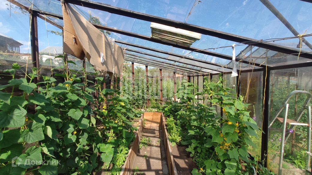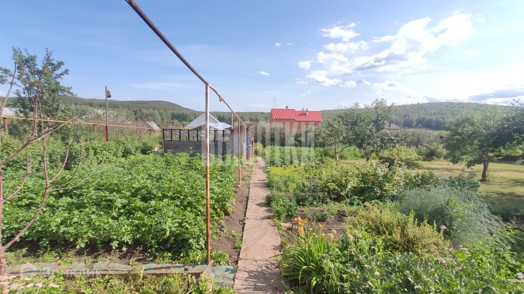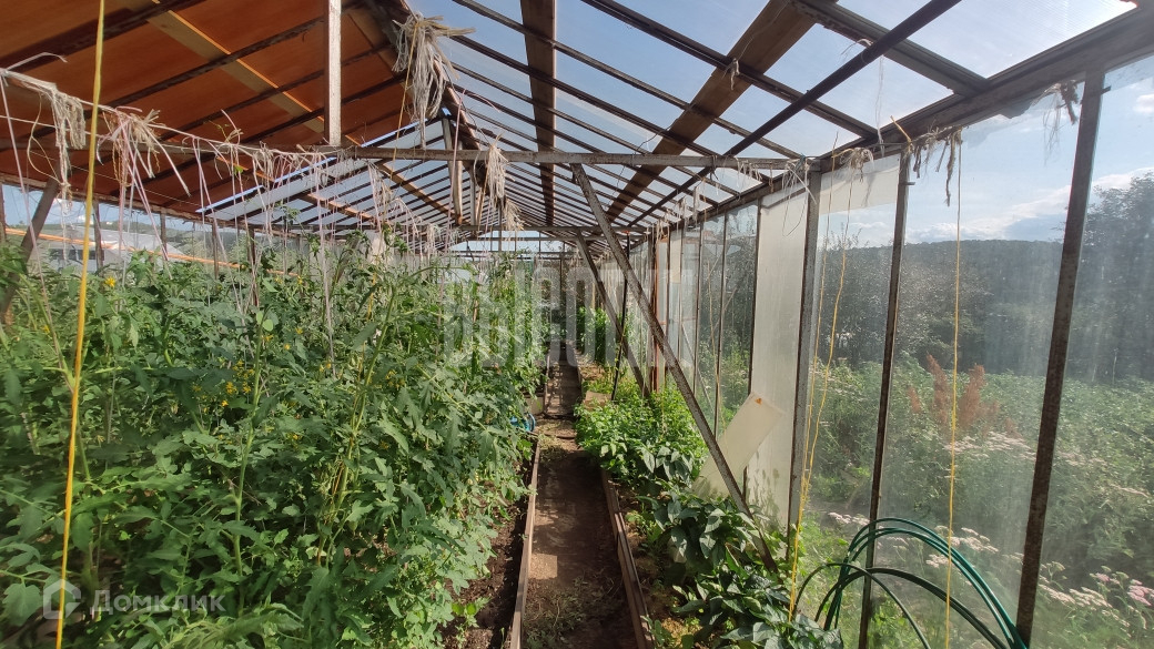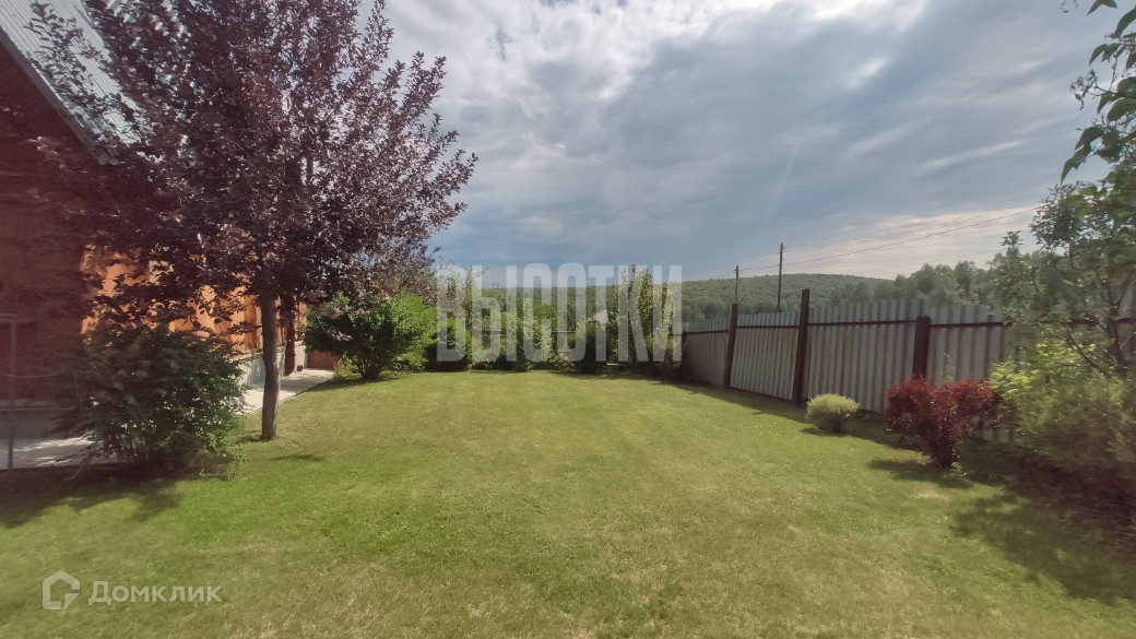 Участок правильной прямоугольной формы, площадь 20 соток, ухожен и засажен. На участке есть баня, гараж, подсобные помещения, курятник. В саду две теплицы, огромное количество плодоносящих деревьев и кустарников. Большой участок возле дома засажен газоном (личное футбольное поле), декоративными растениями, есть беседка и мангальная зона. По периметру участка забор из профнастила. Очень хорошие подъездные пути, асфальт практически до самого дома.