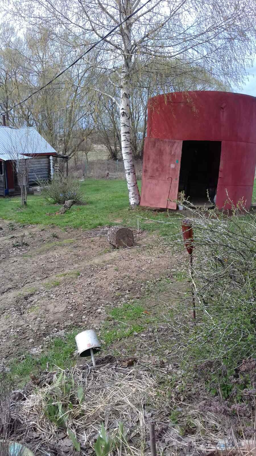 Вблизи от основного дома стоит рубленный домик 3х3 кв.м., его можно использовать под курятник. Также рядом с домом стоит вагон, используется как склад. На территории участка стоит бочка диаметром 3 метра с погребом. Имеется свой пруд, который можно использовать для купания и полива земли.