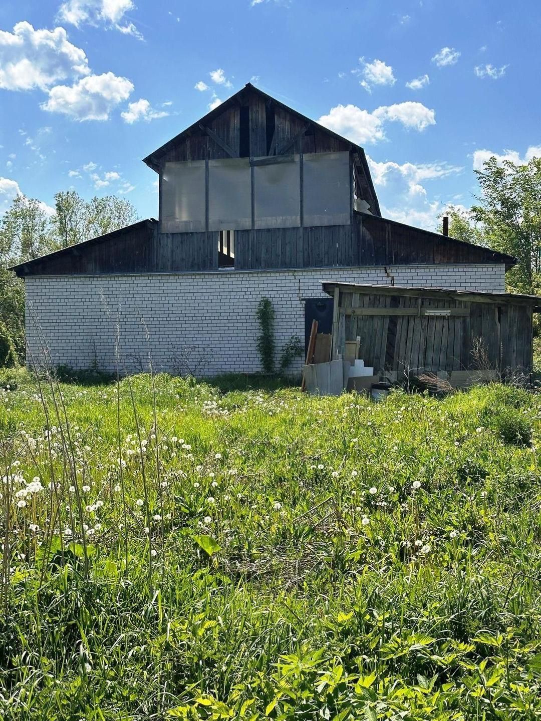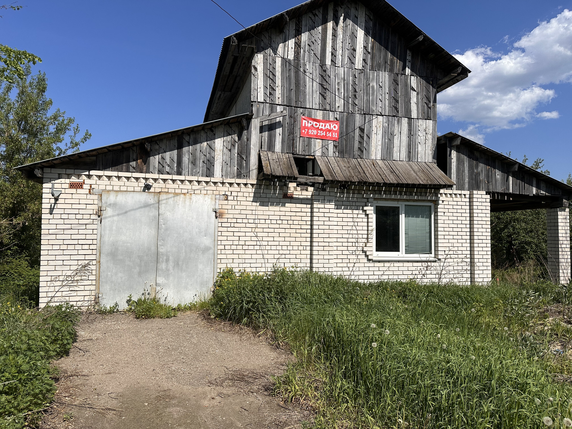 Дом построен из бревна. Обложен белым кирпичем, пристрой из белого кирпича (оформлен)