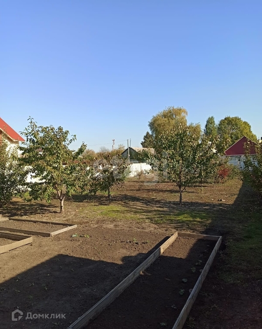 На участке сад с плодовыми деревьями.