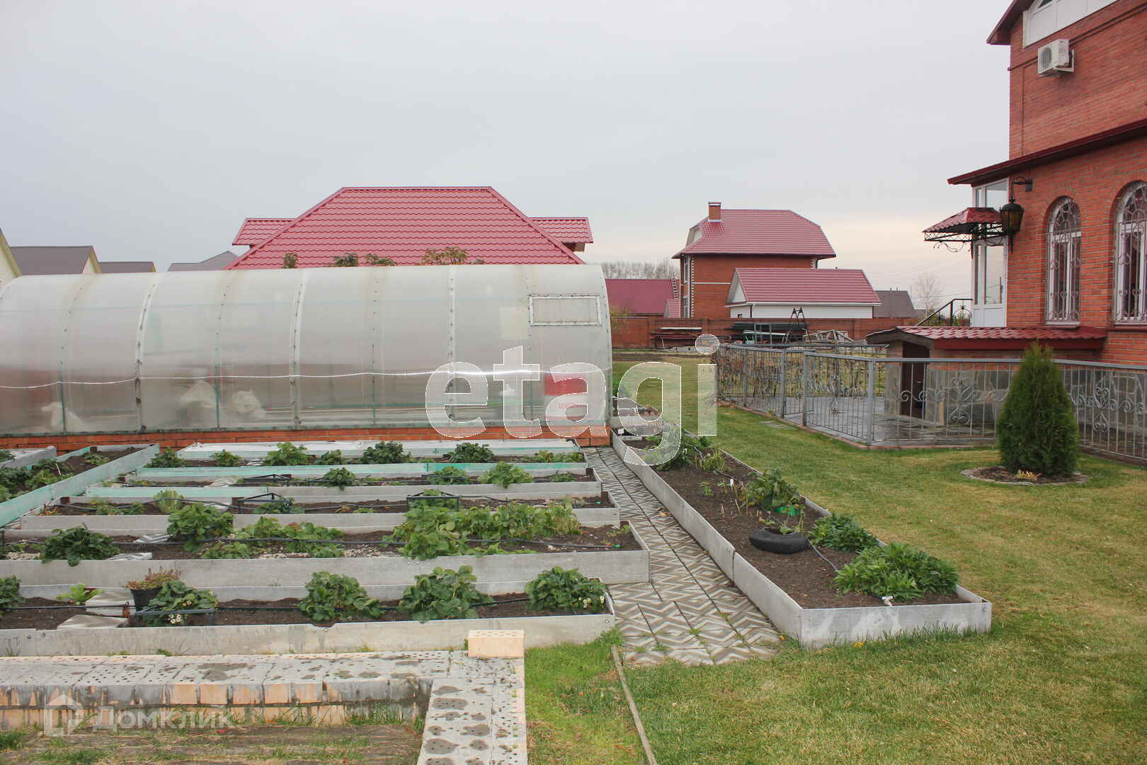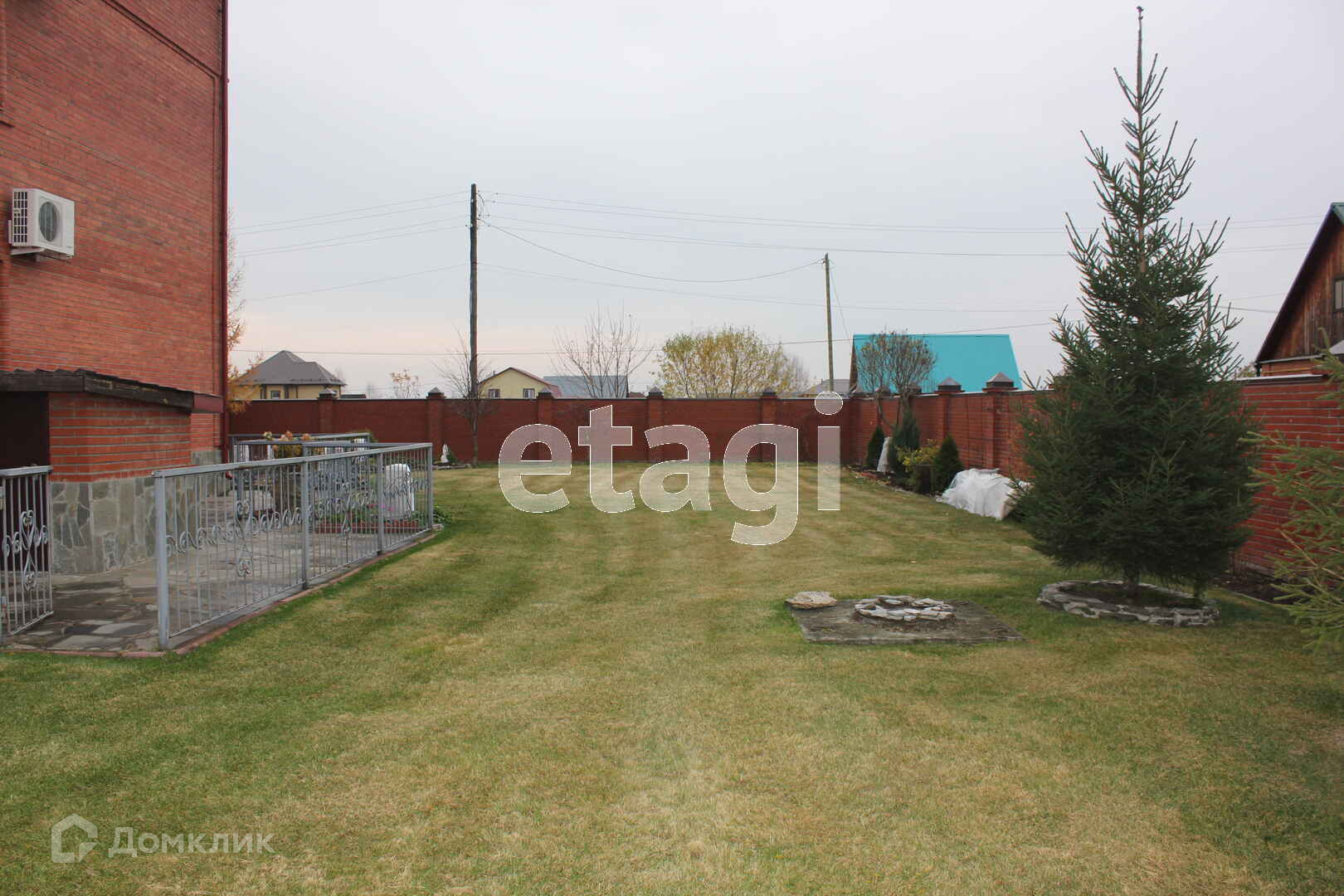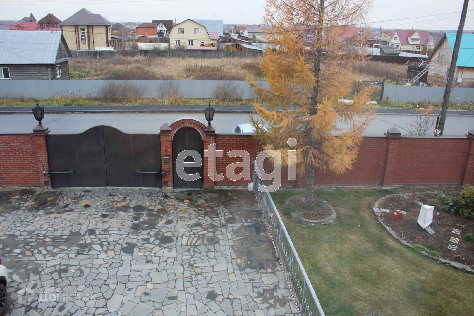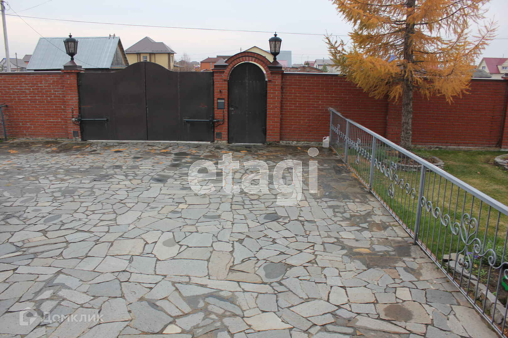 Кровля капитальная из металлочерепицы. Забор сплошной, кирпичный.