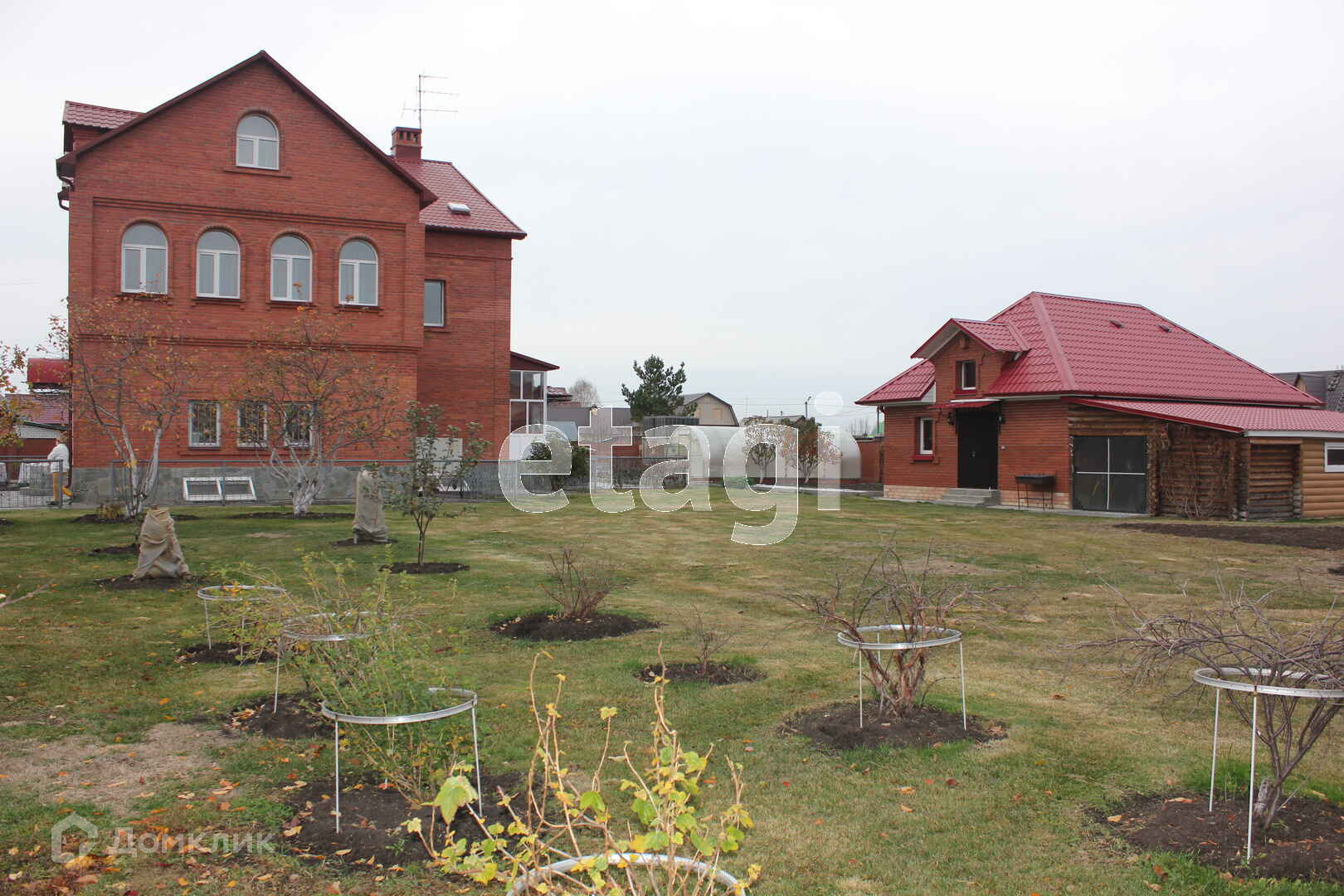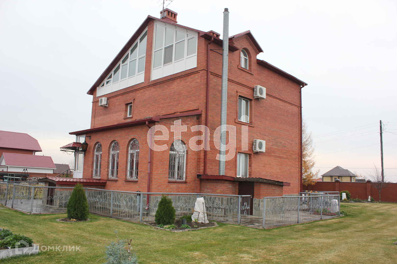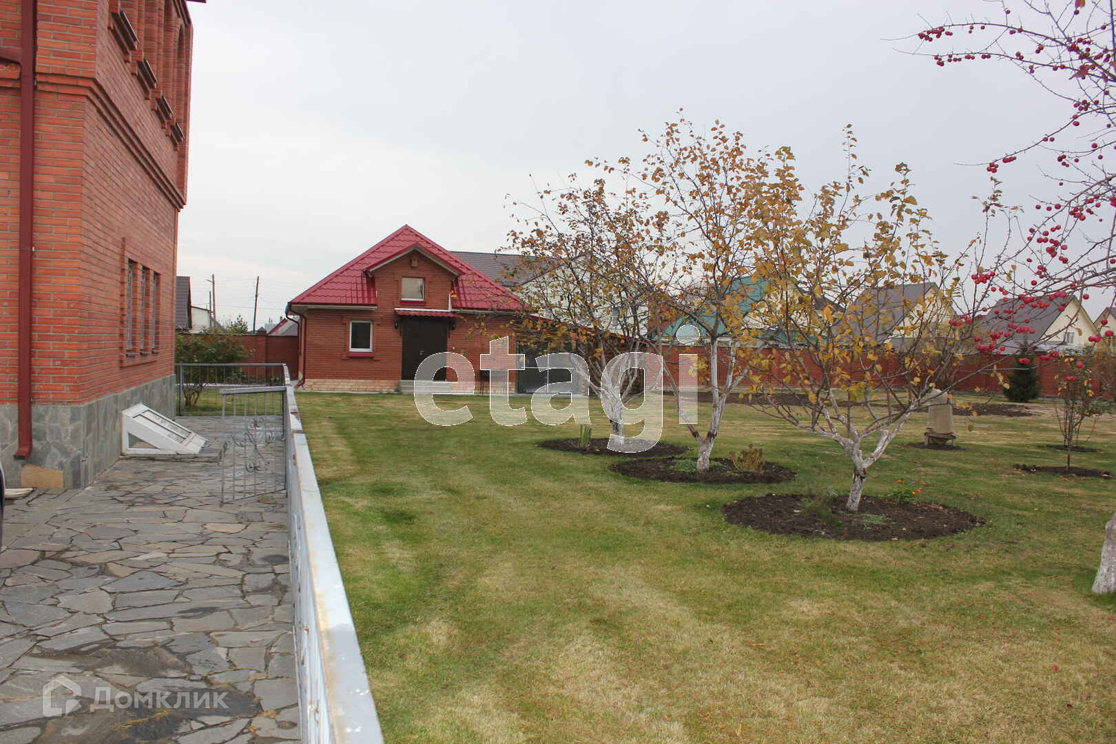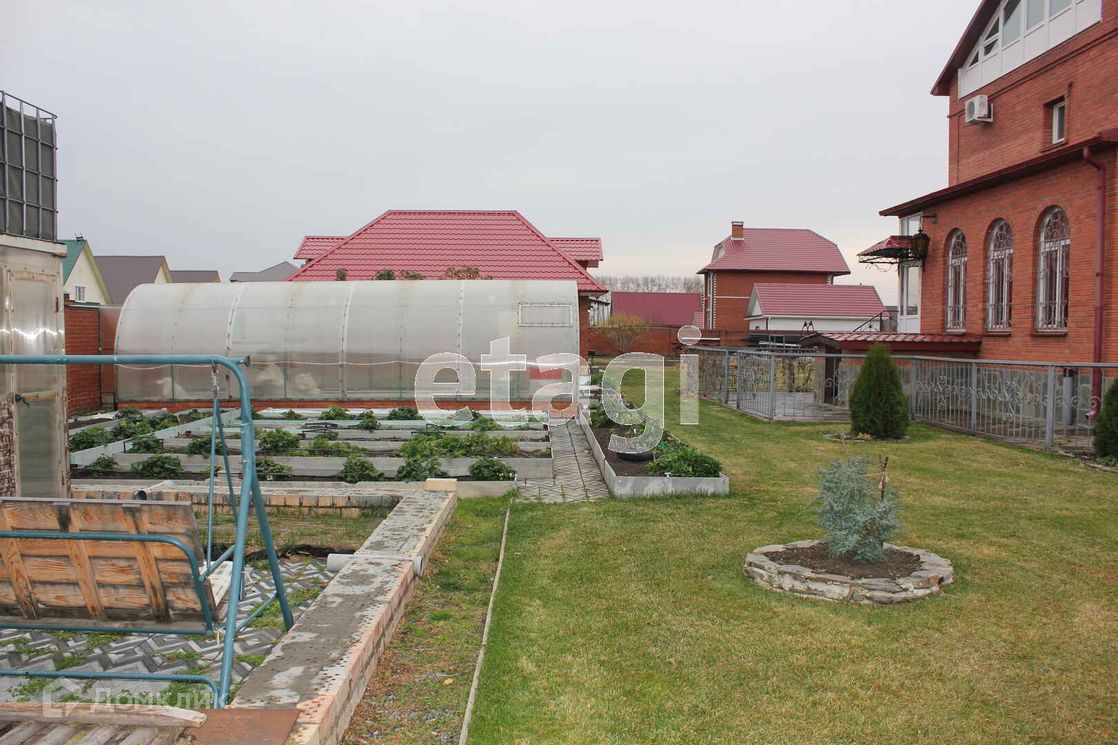 Кровля капитальная из металлочерепицы. Забор сплошной, кирпичный.
