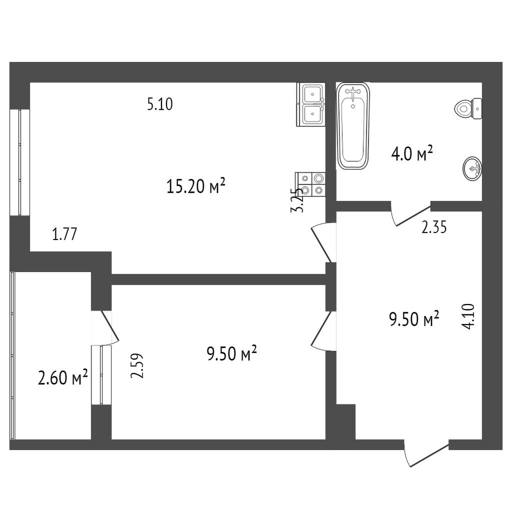 Общая площадь 38.2 м2