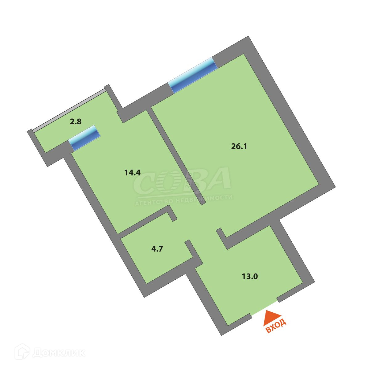 Общая площадь 58.2 м2