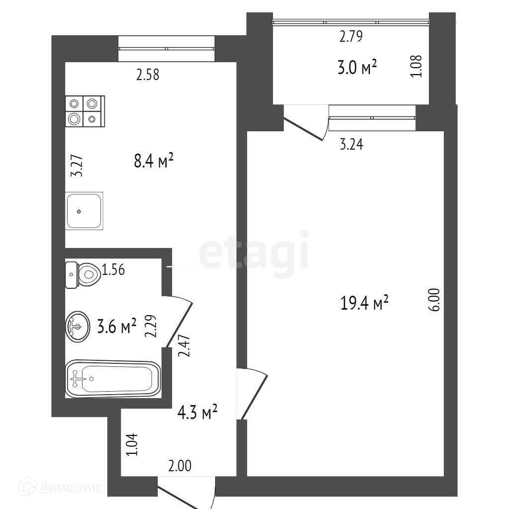 Площадь кухни 8.4 м2