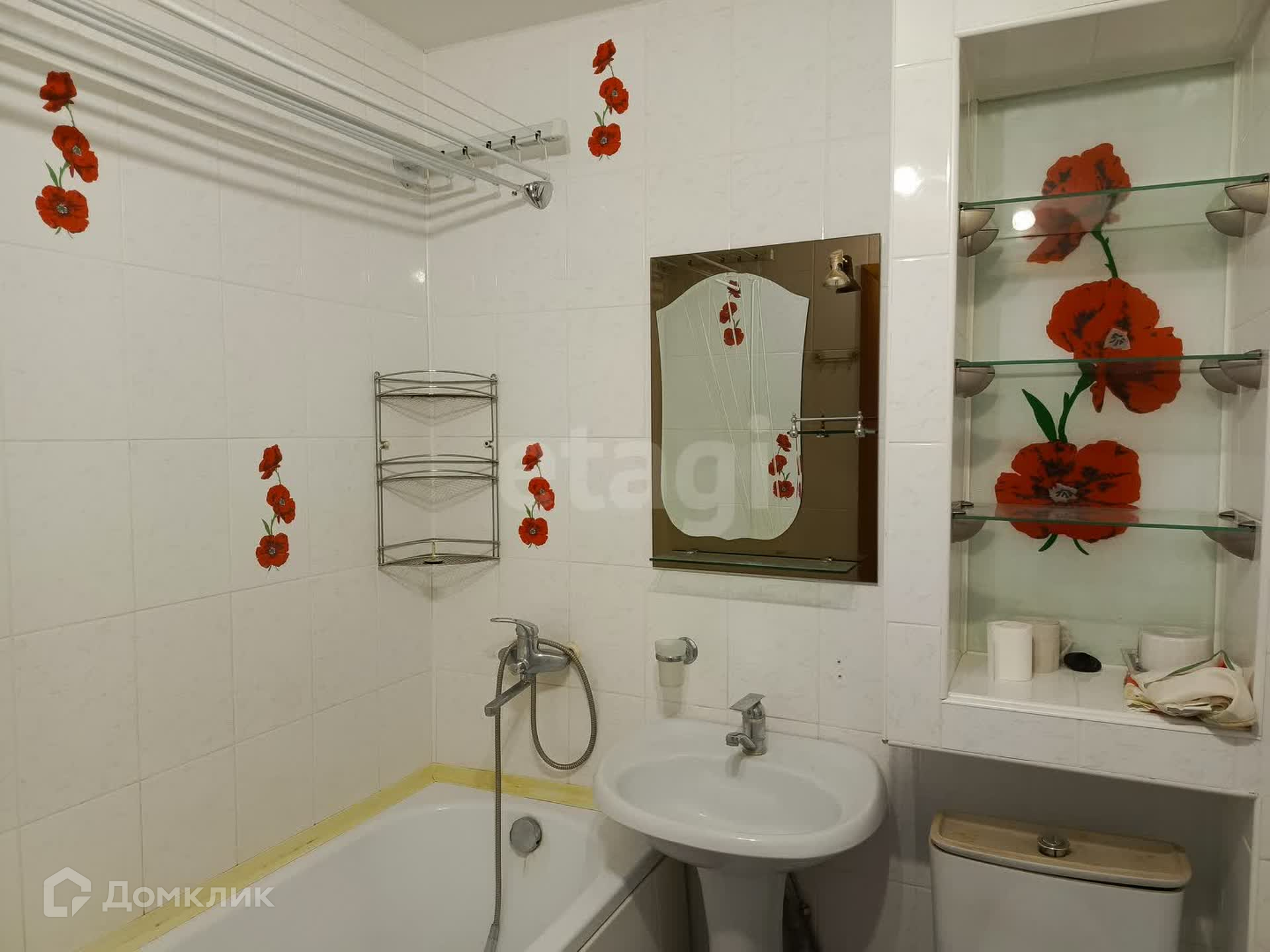 Санузел совмещенный, облицован керамической плиткой.