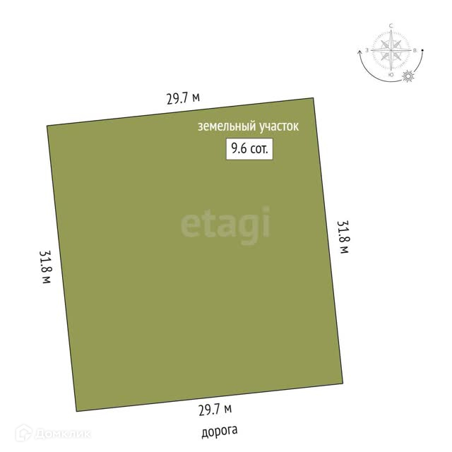 Площадь участка 9.6 сот.