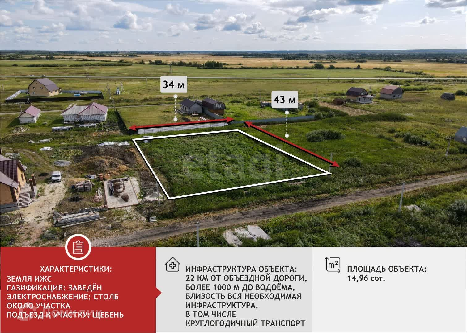 Участок под ИЖС, 14.96 сот. на продажу в селе Червишево, Землянская улица