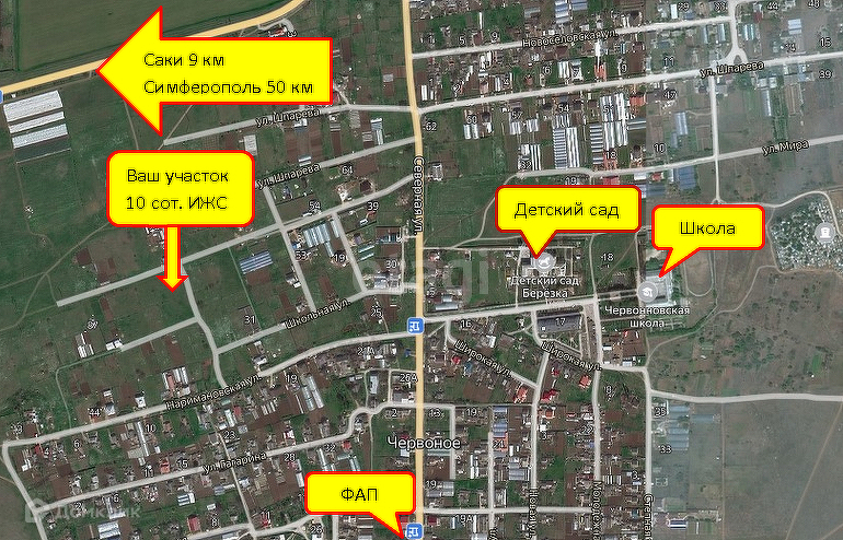 Наличие круглогодичного транспорта. Подъезд к участку грунтовой. Удобная развязка, до центра города Саки 9 км , обновленная трасса Евпатория-Симферополь. Звоните - спрашивайте, приезжайте-смотрите. Номер в базе: 8640250. Район: Червоное с.
