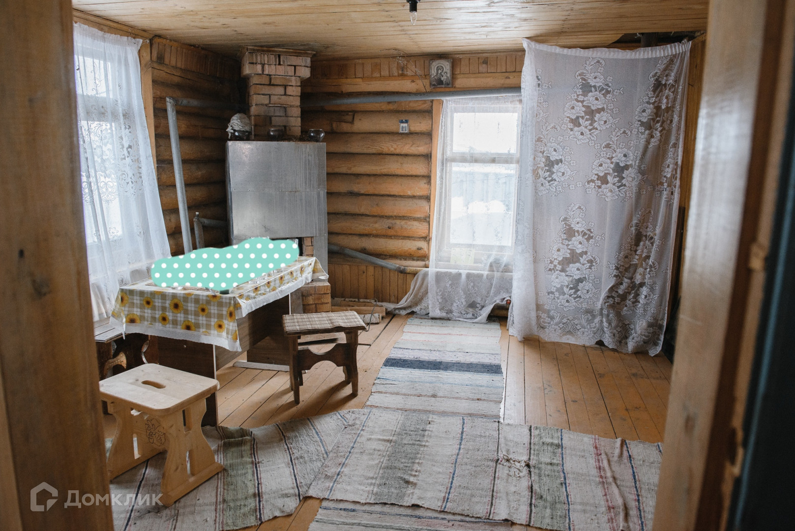 Дом теплый, построен в 2007 году. Материал стен - сруб (бревно), облицованный шлакоблоком.