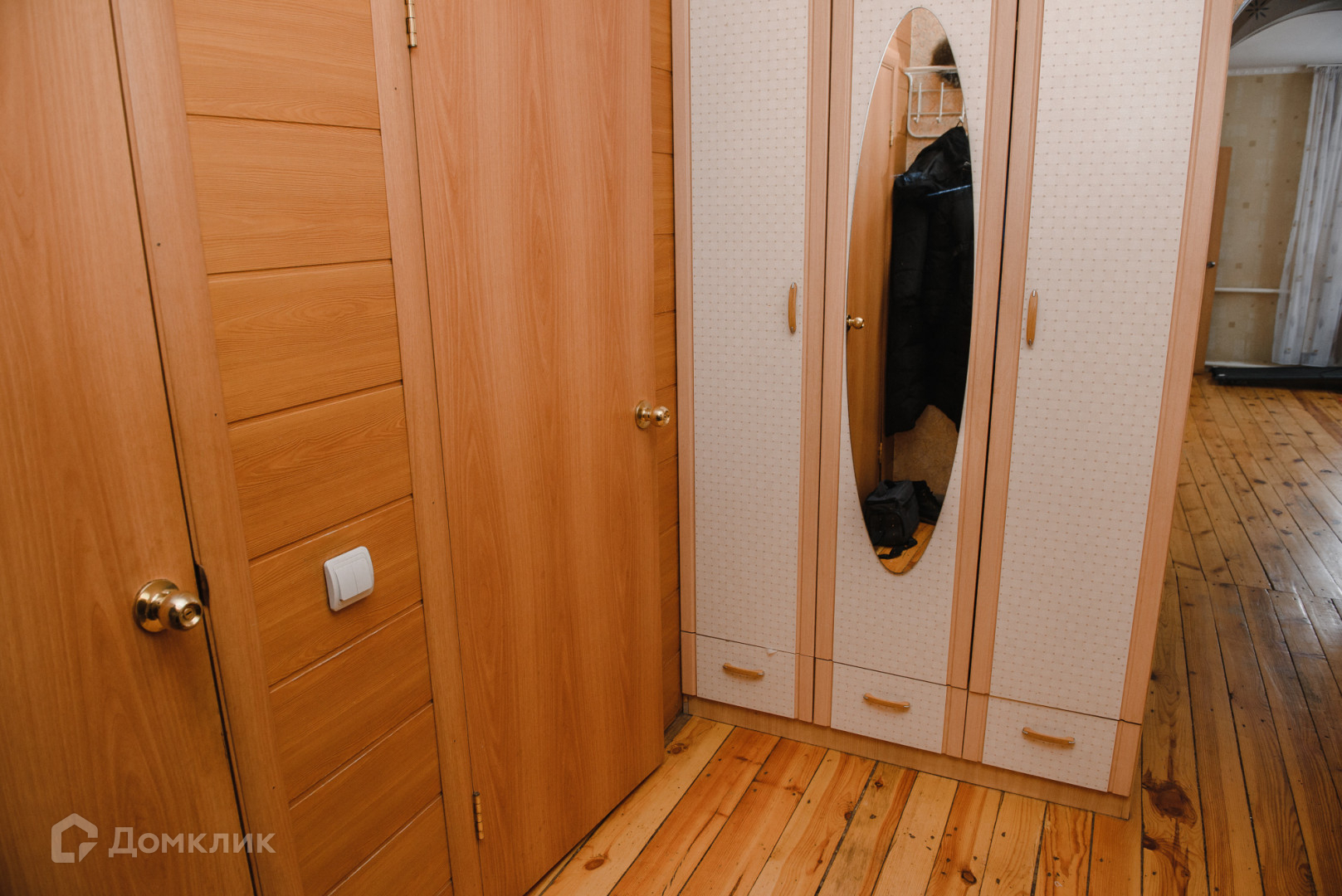 Планировка: прихожая, кухня, гостиная, две спальни, раздельные ванная и санузел.