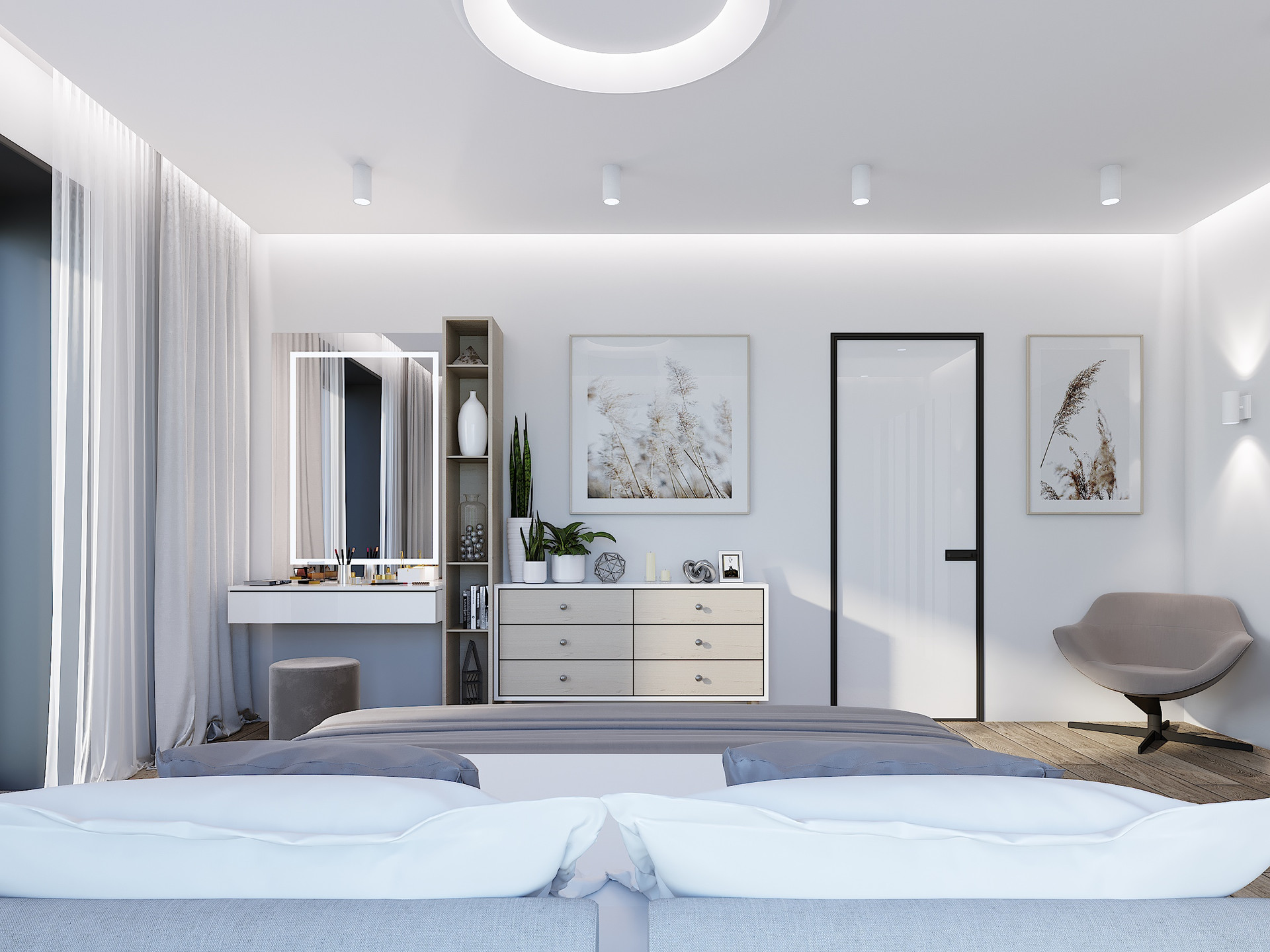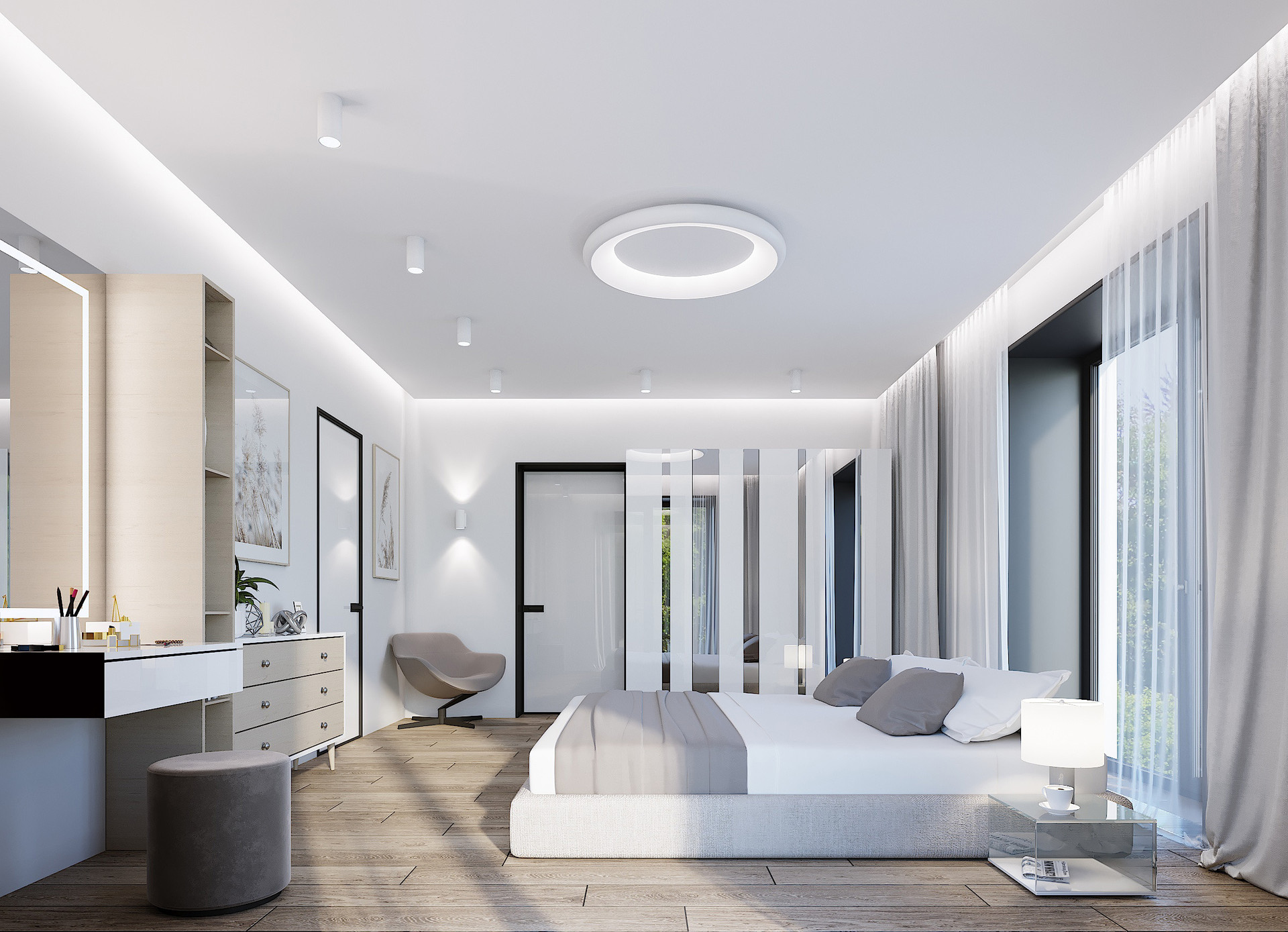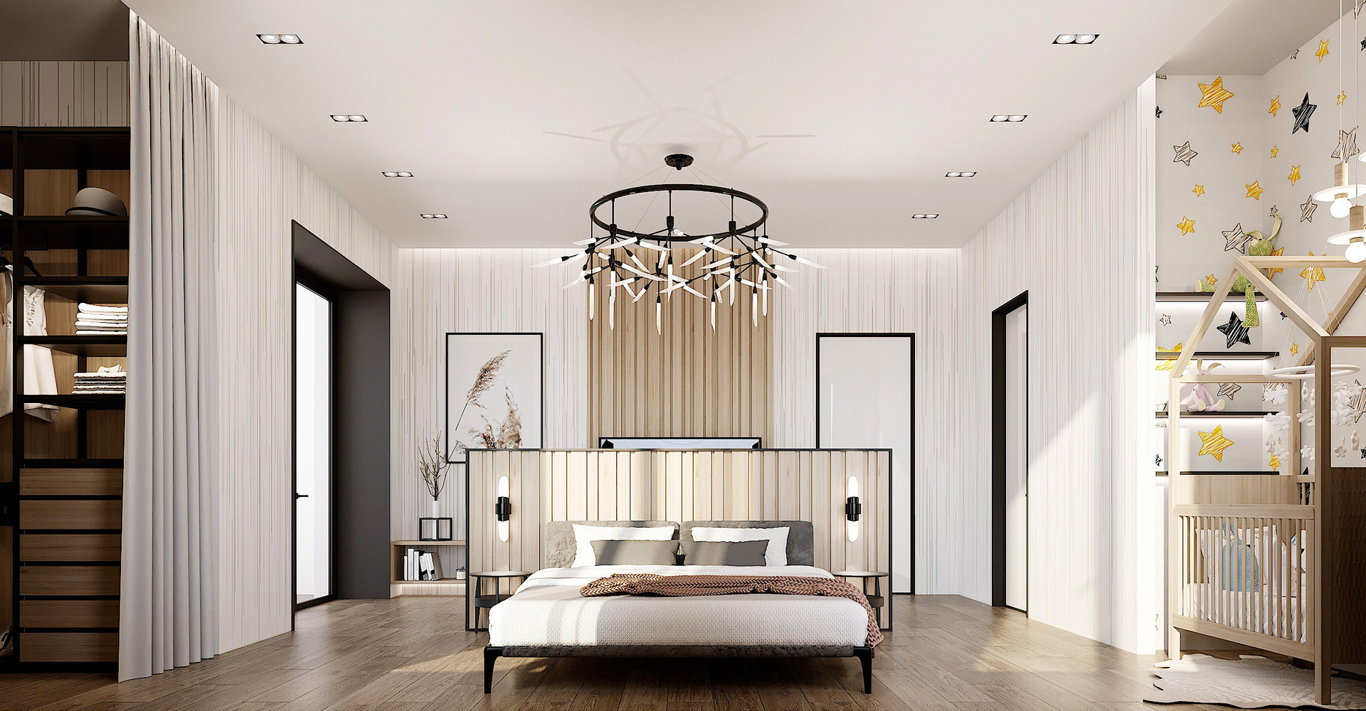 -3 спальни с индивидуальными сан-узлами, просторной гардеробной.
