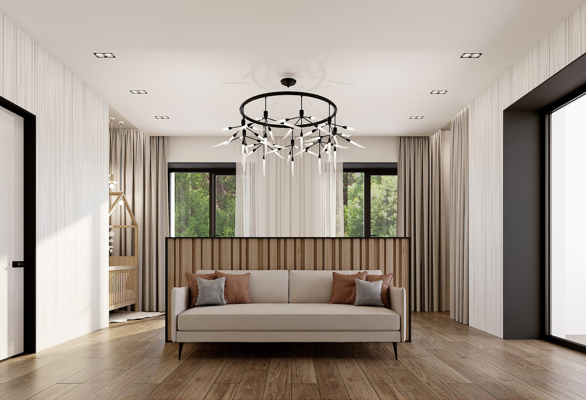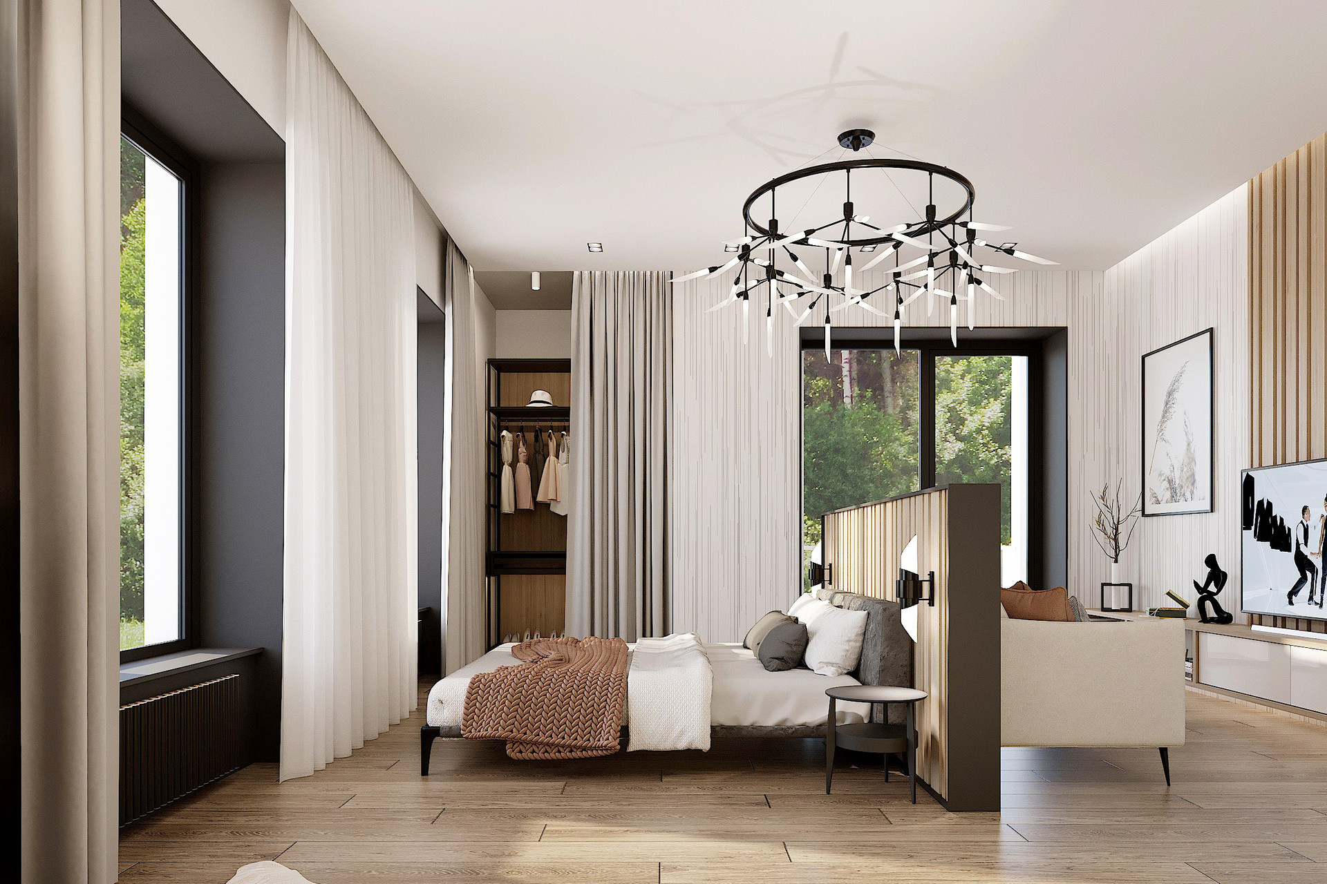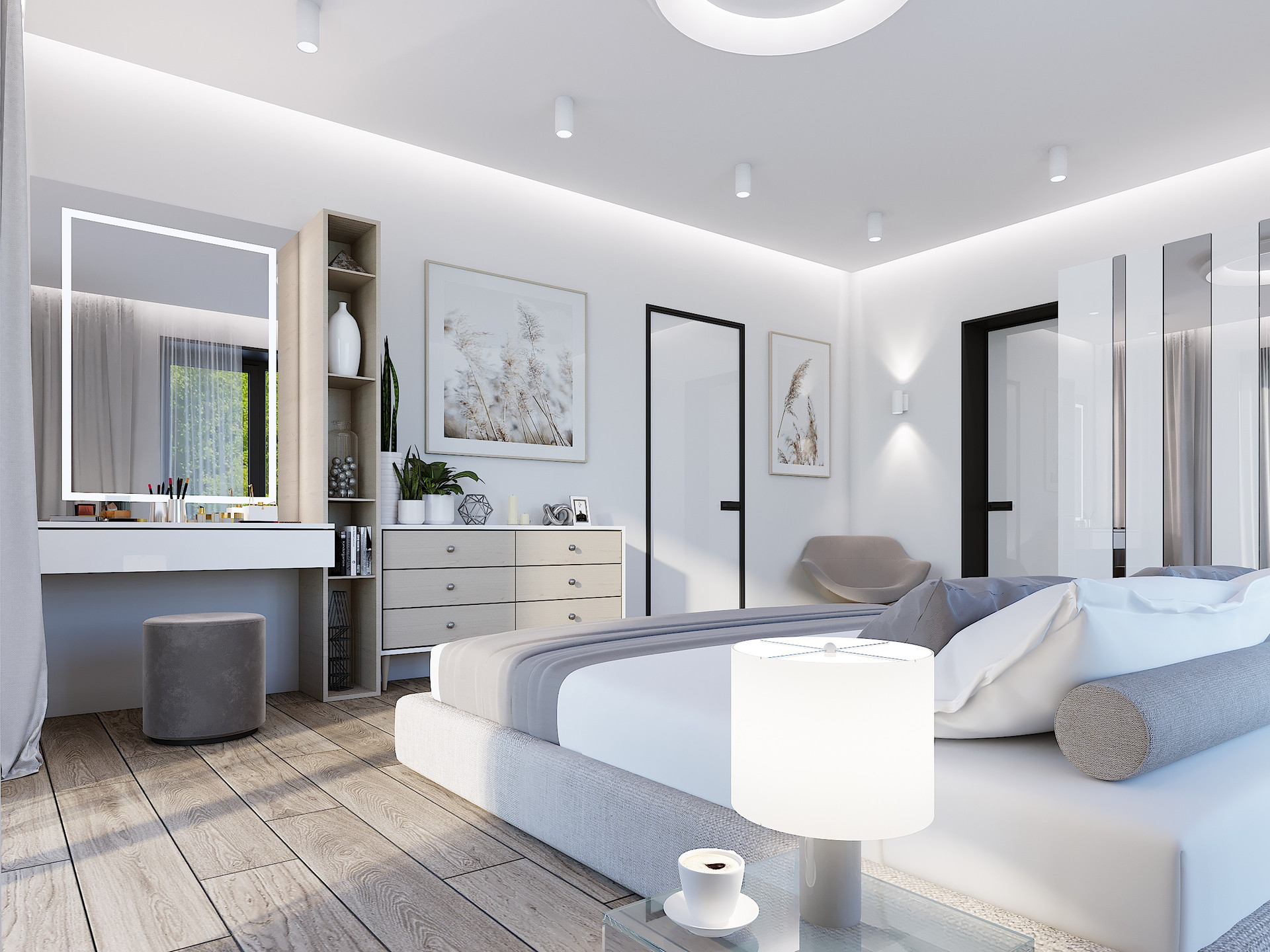 -3 спальни с индивидуальными сан-узлами, просторной гардеробной.