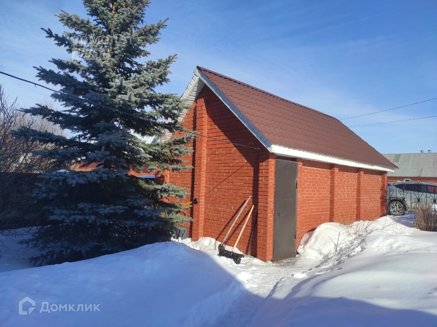 Участок огорожен. На участке имеется баня, кирпичный гараж с автоматическими воротами, крытый навес- летом можно использовать как мангальную зону. Перед домом выложена брусчатка.
