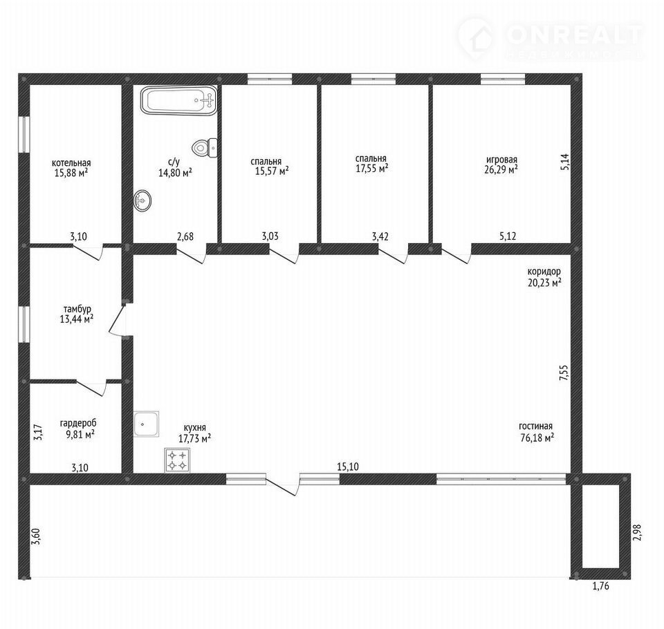 - гостиная со дровяным камином и вторым светом (76,18 м2)