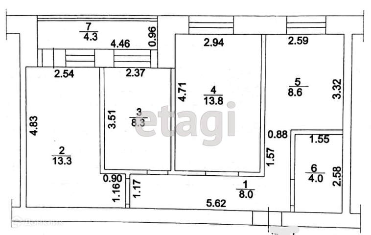 Общая площадь квартиры 58,1 кв.м.