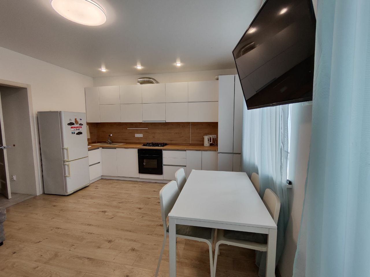 Остается приятным бонусом покупателю встроенный кухонный гарнитур с техникой, шкаф-купе.