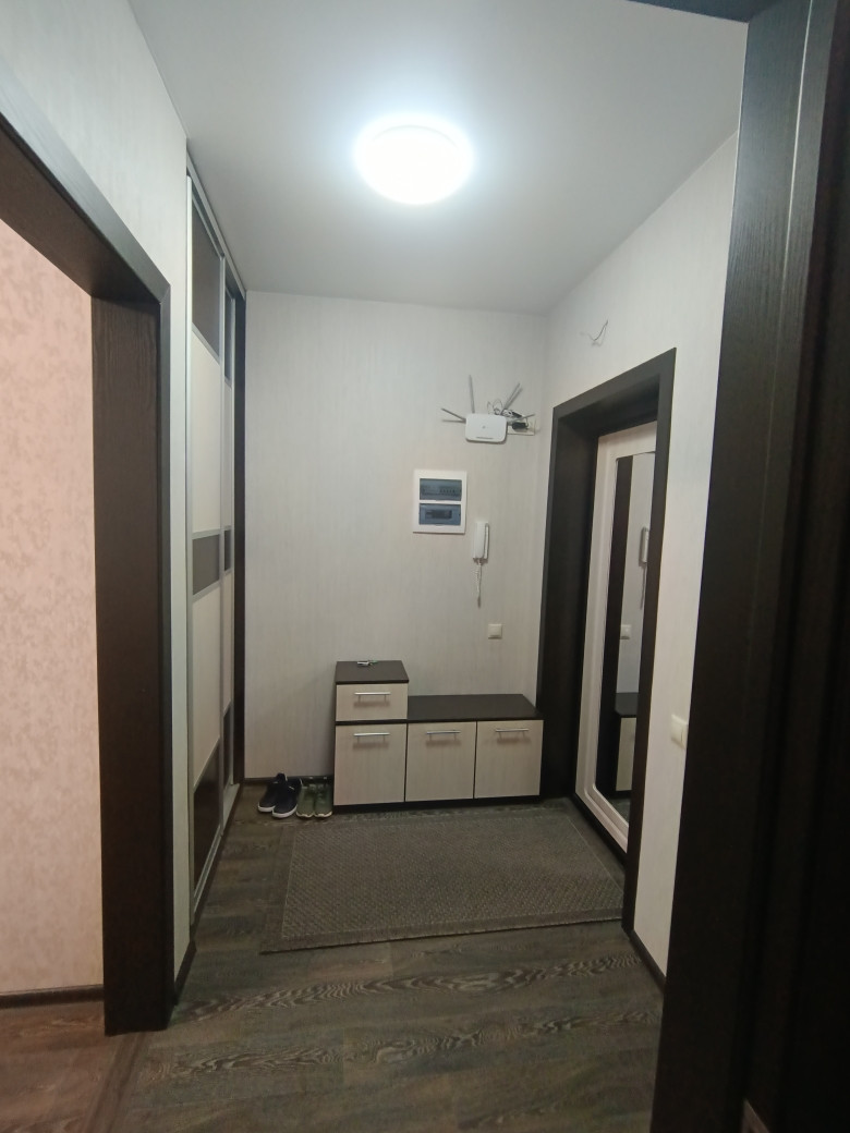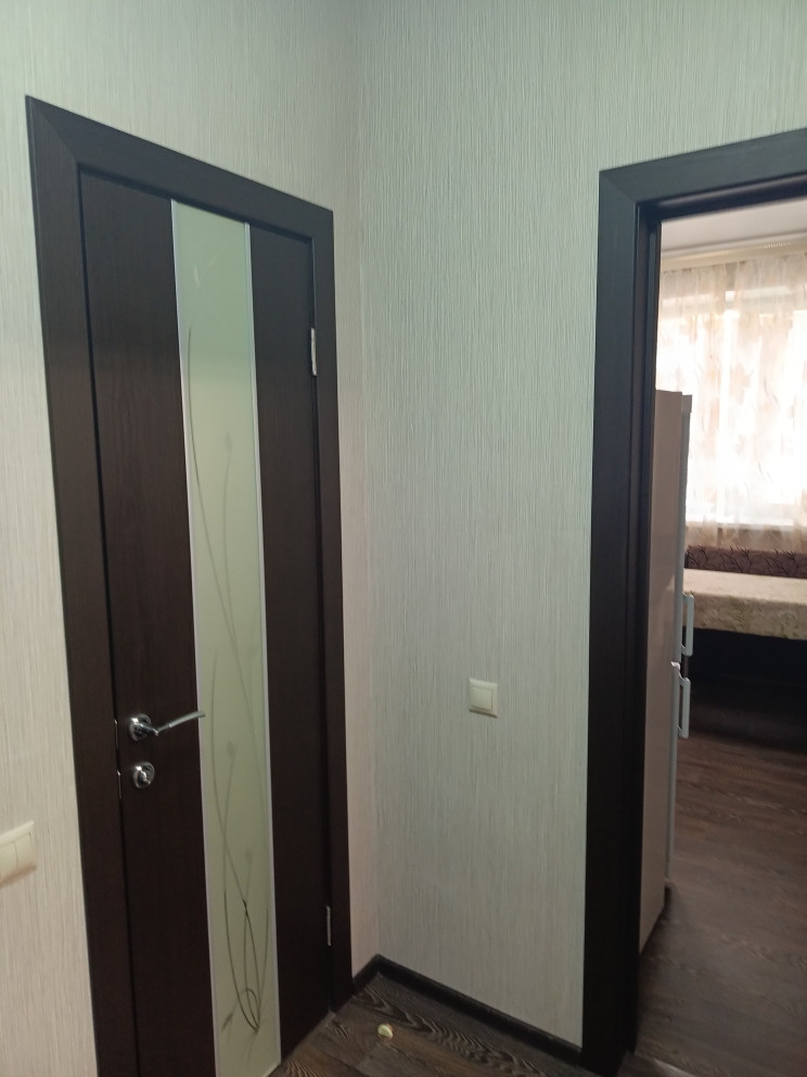 Ремонт отличный, делали для себя: межкомнатные двери, санузел полностью отделан кафелем, на полу по всей квартире линолеум, натяжные потолки, лоджия застеклена, установлена хорошая входная дверь и межкомнатные двери.