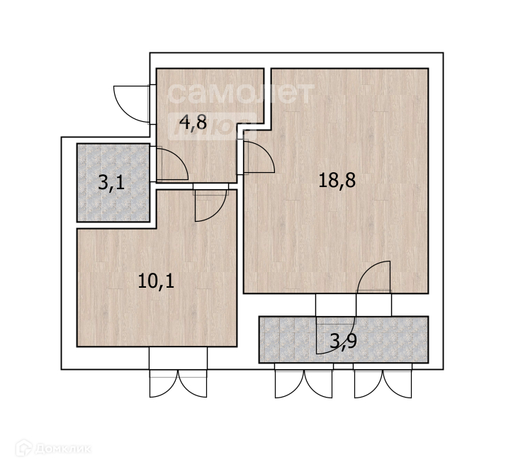 Общая площадь 36.8 м2