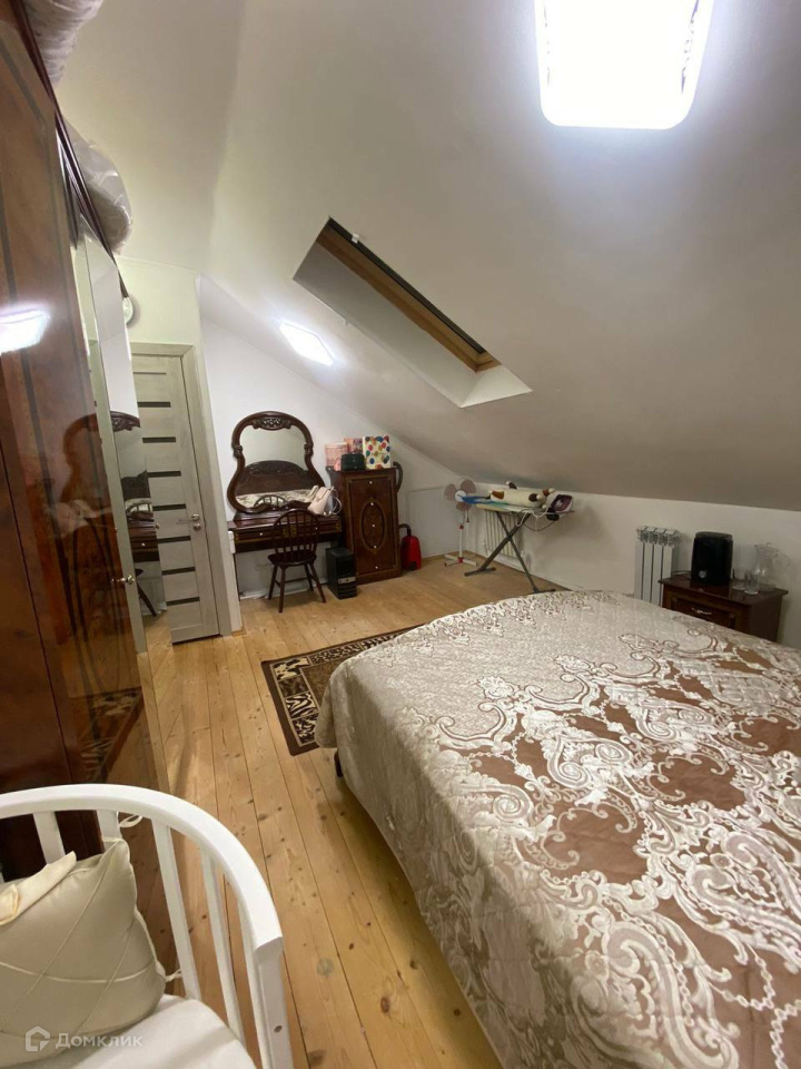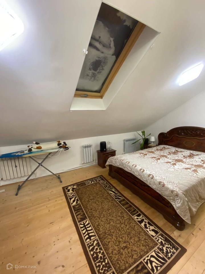 спальная комната с шумоизоляцией и мансардным окном с видом на звезды.
