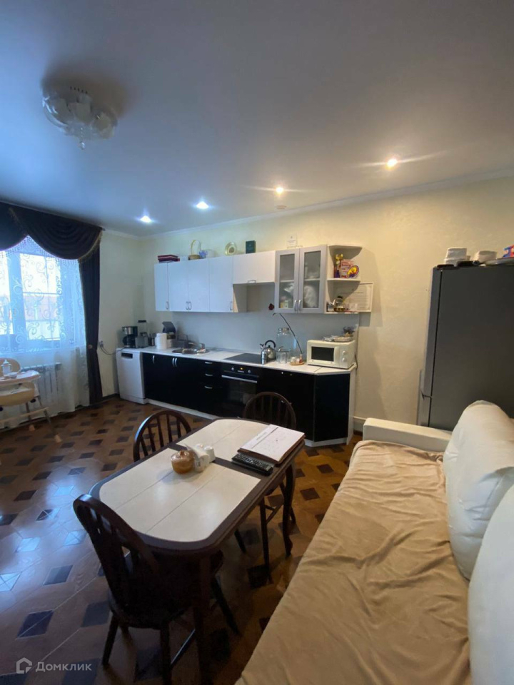 В доме сделан хороший ремонт- потолок натяжной, на полу ламинат, на стенах обои. Также в санузле и в коридоре сделан теплый пол. В данном варианте  таунхауса за счет удобной и продуманной планировки может комфортно проживать семья и с 2-мя детьми. В лестнице установлены под ступеньки встроенные ящики. По мебели: 1 этаж остается кухонный гарнитур, варочная панель, диван, шкаф на 1 этаже. На втором этаже мебель остается за дополнительную оплату.